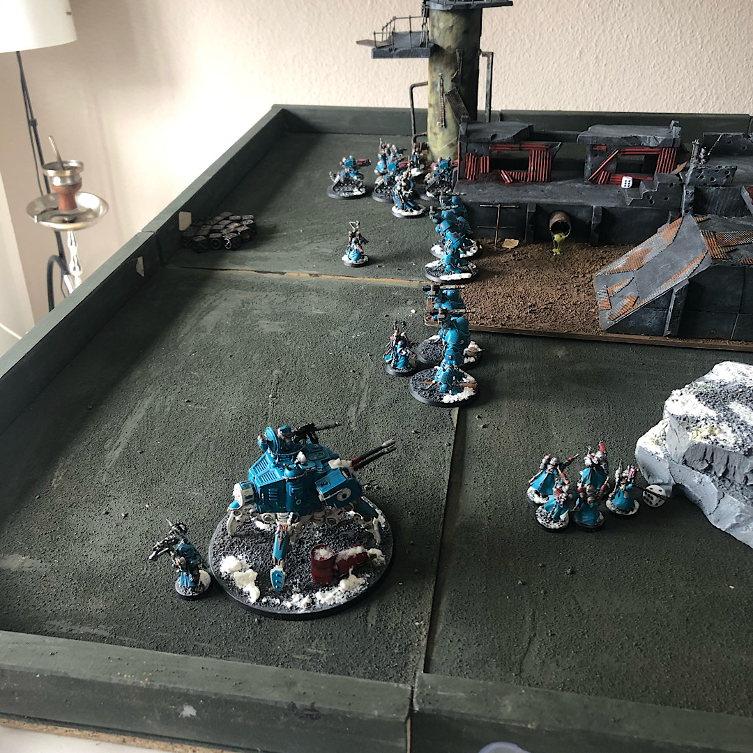 Samstag war das 2. Spiel des Mechanicums gegen die Orks. Einzige Änderung im Vergleich zum letzten Mal war, dass ich ein Trupp Infiltrators mit reingenommen habe, die ich mir extra letzte Woche geholt und schnell bemalt habe. Siehe Armeeliste etwas weiter oben...