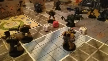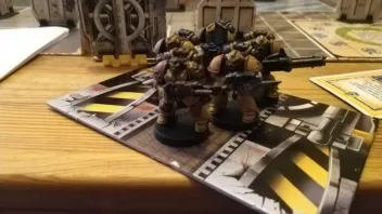Ich spielte die Blood Angels und trotz Warnung, dass ich zu schwach auf der Brust sein würde, verzichtete ich auf eine schwere Waffe, um (ihrem Ruf und Kampfstil gerecht werdend) das Nahkampf-Potential meiner Truppe zu steigern...Dies erwieß sich im ersten Spiel als nicht allzu nützlich, hat jedoch im zweiten Spiel sein volles Potenziel entfaltet, als in einem knallharten Boss-Kampf mein GSG-Commander in zwei engen Runden den Dreadnought so schwächte, dass ein durch die umliegenden Gegner stürmender GSG-Kämpfer mit aufgepflanztem "Schocker"-Bajonett den feindlichen Läufer erledigen konnte!