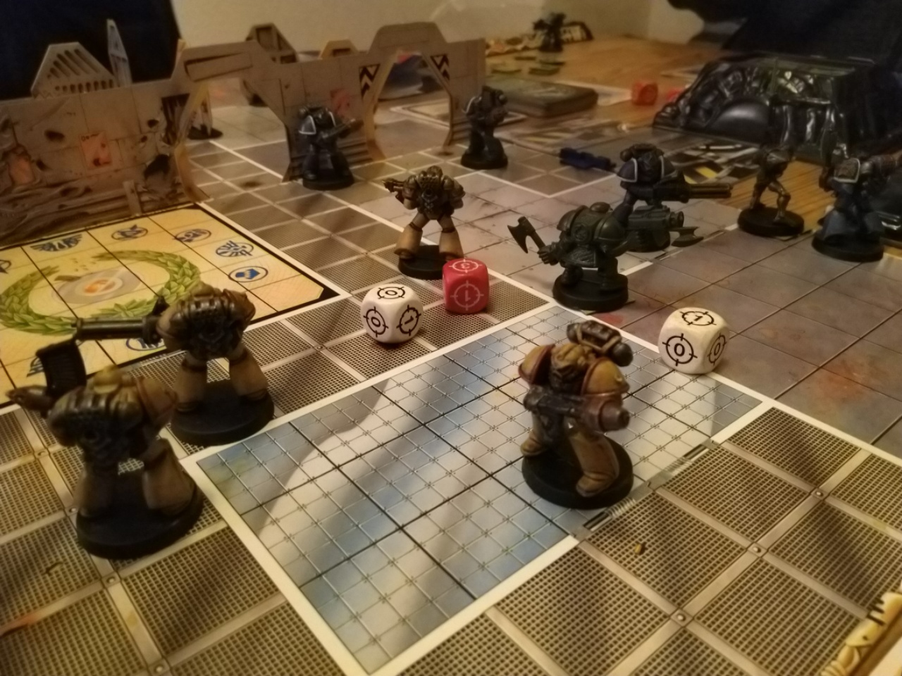 meine Imperial Fists betreten den Raum und das Chaos bricht über Sie ein! Ein Chaoskrieger ist bereits von der Platte geschossen.