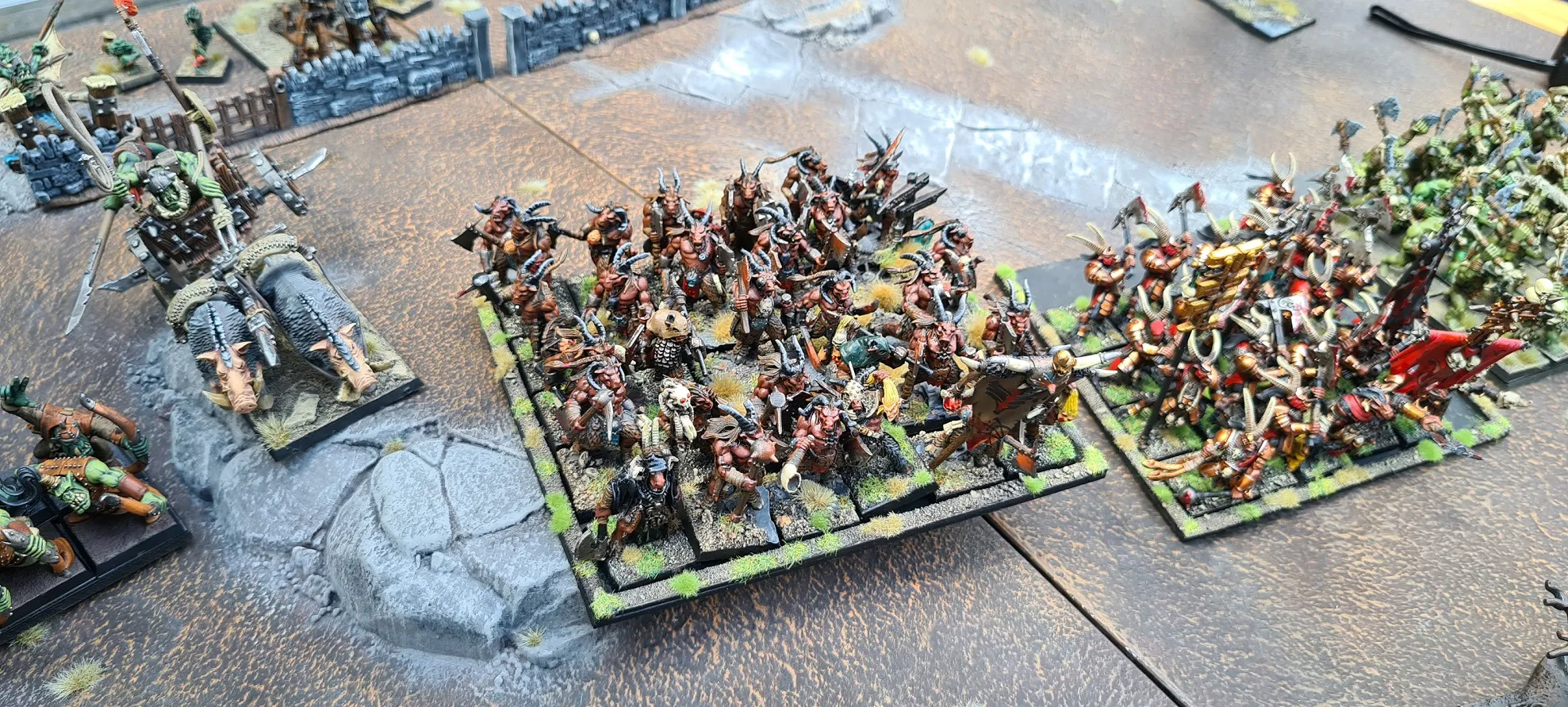 Die Tiermenschen und Orks stellen ihre kampfkräftigen Blöcke auf
