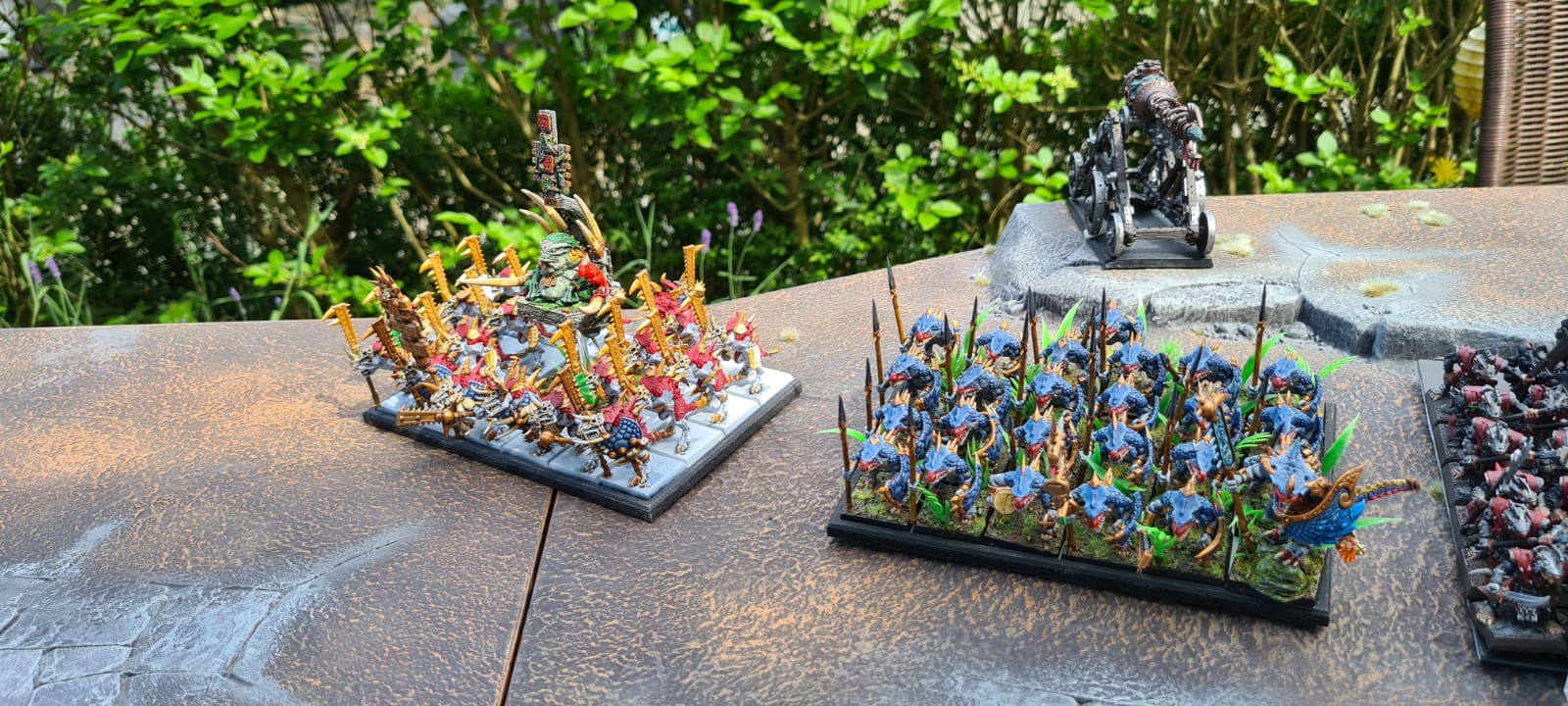 Die Echsen sind die einzigen, die einen Magierkommandanten aufs Feld gebracht haben: Einen Slann samt Leibwache aus Tempelwache und Sauruskriegern