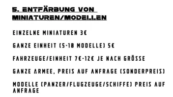 Ich schreibe einfach mal meinen Text dazu, da ich Modellbauer seit 1996 bin und seit diesem Jahr mein eigenes Bemalstudio am aufbauen bin. Ich denke das ich recht faire Preise für mein Level anbiete und werde meine "Preisliste" auch mal hier in den Beitrag posten. Falls jemand daran interessiert ist, lass mir gerne eine Nachricht zukommen. Für Bildmaterial von meinen jeweiligen Stufen der Bemalung ist bestens gesorgt. Liebe Grüße und Happy painting.