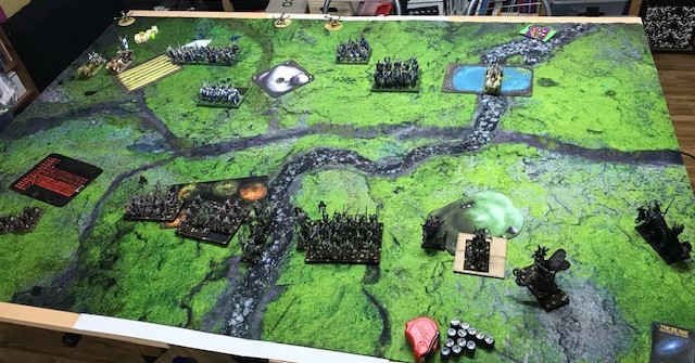 Leider war das Szenario, dass man Einheiten des Gegners töten musste. Dafür sind die kleinen Schwertmeister natürlich einfach nur ein Nachteil und ich habe sie versteckt. Schade, weil ich die gerne mal getestet hätte. Wir haben diagonal gespielt.
