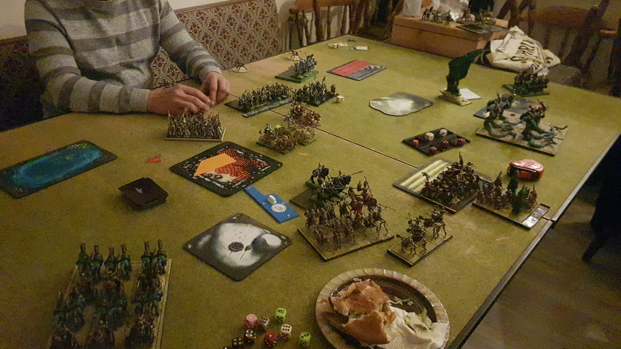 Da mich Heiner gebeten hat, ein paar Fotos zu machen und hier hochzuladen, tue ich ihm gerne den Gefallen. Leider gibt es vom ersten Spiel keine Fotos. Dieses hat Heiner ziemlich deutlich mit 15:5 (wir haben es nur überschlagen) gewonnen. Durch schlechtes Stellungsspiel meinerseits sowie zu vielen Spielfehlern ein gerechtfertigter Sieg für die Hochelfen.