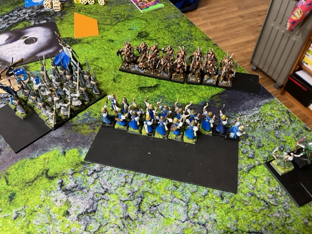 Dann mussten die Minos zeigen, dass sie den Gors auch wirklich helfen wollen. Die Phönixgarde wollte vorbeiziehen und sagte den Angriff auf die Streitwagen an. Ich ließ sie fliehen und so ging es gegen die Minos. Was aber eher gut für mich lief. Denn ich haute die Garde reihenweise um und überrannte sie.