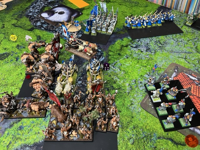 Mein Streitwagen konnte war noch die Löwenplänkler verjagen und eine Bestie diese töten, aber sonst war nicht mehr viel übrig. Der Schamane lief in die Bogen, um mit Glück noch was zu reißen, aber das war mehr Spaß und nichts realistisches mehr. 8o