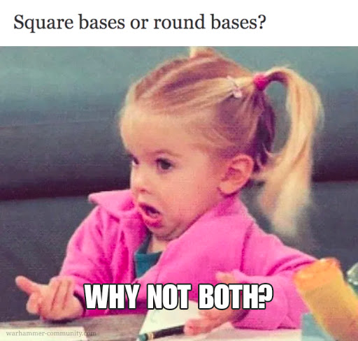 Ehr runde Minibases auf Eckigen Regibases wie ASoIaF oder runde Redibases wie die Truppbases bei Test of Honour.