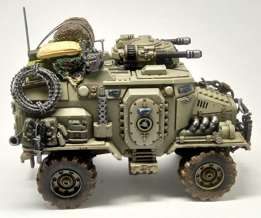 Das Modell sagt mir normalerweise nicht so zu; die Chimäre ist einfach der klassische Transportpanzer für mich und mehr braucht es (meiner Meinung nach) nicht...Aber Deine Umsetzung gefällt mir tatsächlich, wirklich gut inszeniert das Teil!