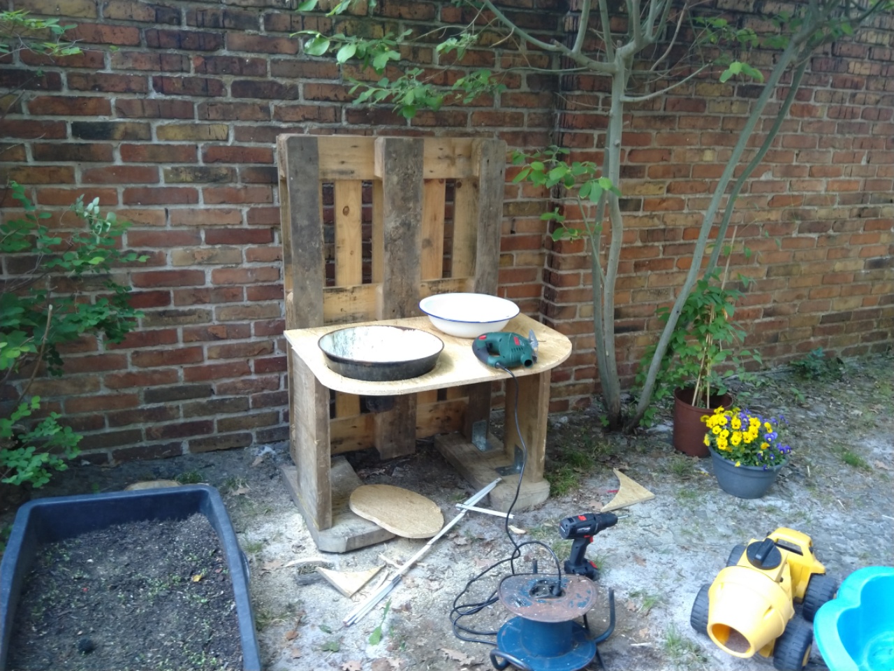 Heute Nachmittag hab ich für die Mäuse ne Matschküche auf dem Hof begonnen zu bauen, die wird morgen geil fertig gemacht!