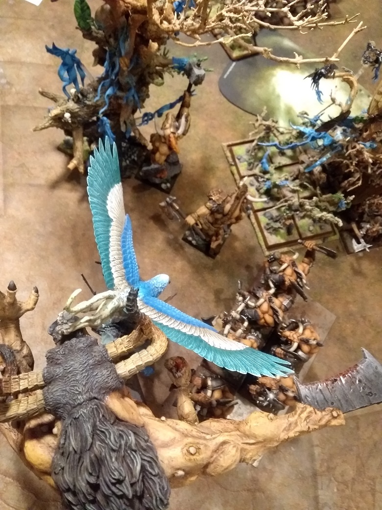 Die Minos gehen in der Adler, der Gorgor in die Dryaden. Der Riese geht außer Sicht der Plänkler-Dryaden und Avatar und Thickets werden umgelenkt.