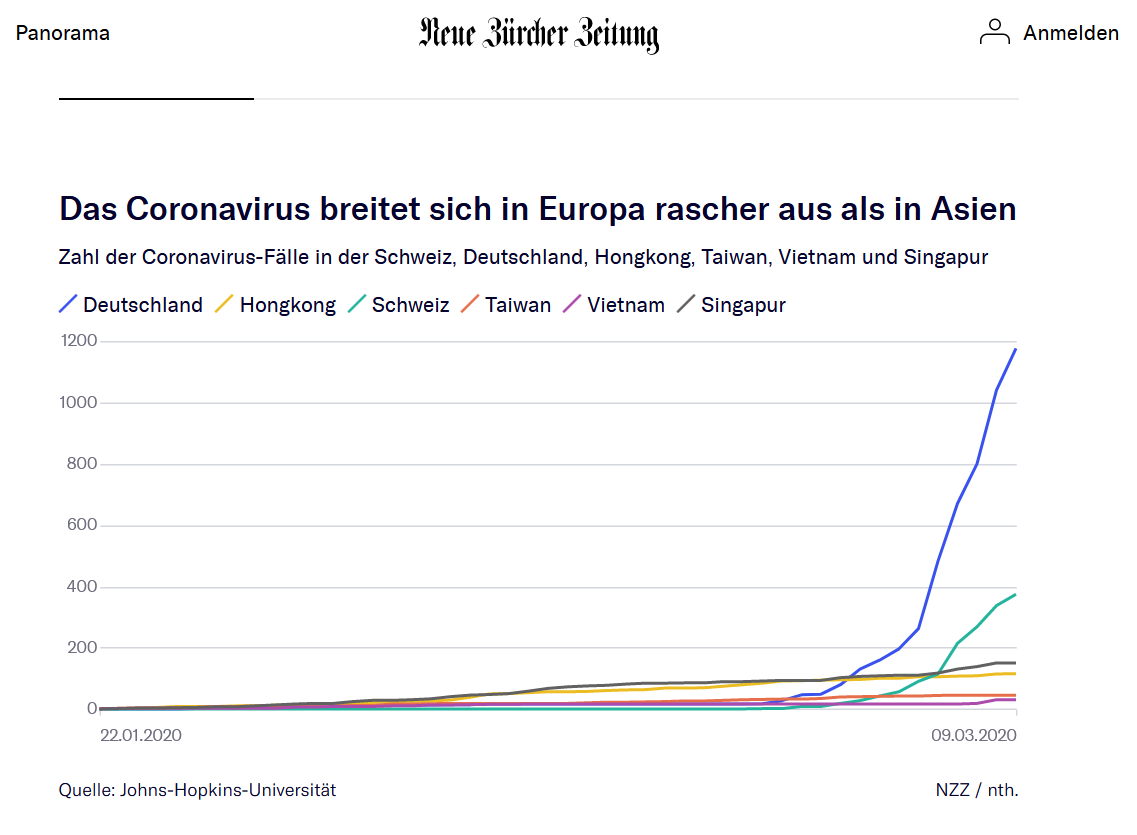 "Als Covid-19 sich noch im Anfangsstadium befand, beschloss Taiwans Regierung, auf Nummer sicher zu gehen. Im Januar gab es erst vereinzelte Berichte von Erkrankten aus Wuhan, Chinas Behörden versuchten, die heraufziehende Krise zu verschleiern. Doch Taiwan begann bereits damit, bei Besuchern vom chinesischen Festland die Temperatur zu messen. Am 7. Februar beschloss das taiwanische Aussenministerium, die Einreise für alle Personen, die in den zurückliegenden 14 Tagen in China waren, zu verbieten.