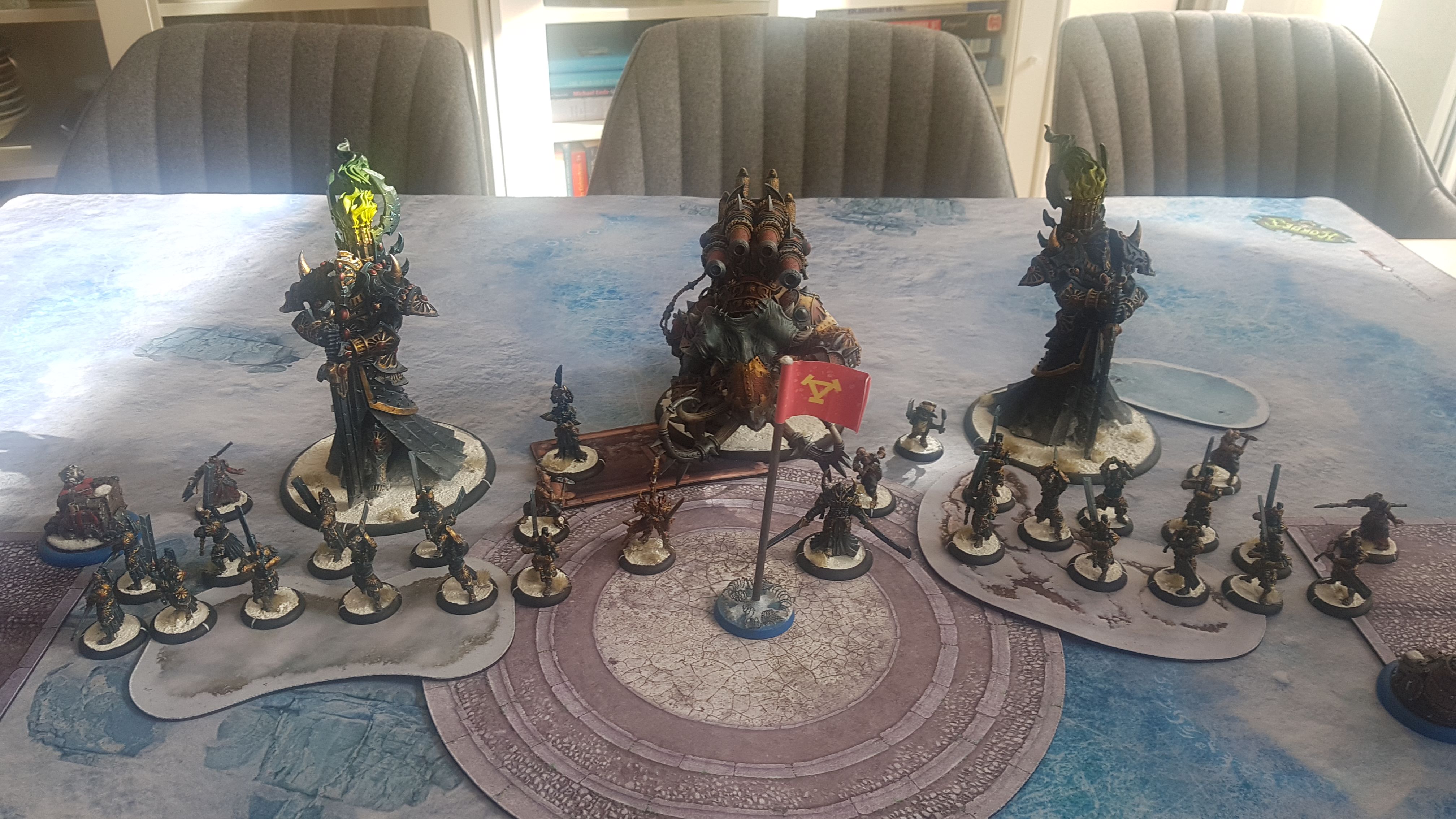 heute um 11.30 starte ich mit einem Kumpel ein best of 3 Match. Gespielt wird Warmachine & Hordes Steamroller 60 Minuten Deathclock für 7 Spielzüge.