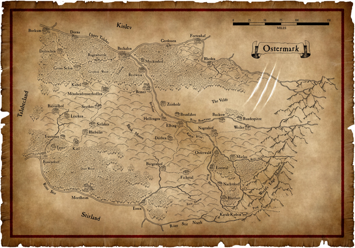 Jetzt frage ich mich jedoch, aus welchen Quellen stammen diese Karten oder sind diese sogar aus den Händen von Fans entstanden? Mir sind i.d.R. die Armeebücher von WHFB bekannt, aber es gibt ja noch andere Systeme, in denen auch viel Fluff zu finden ist, wie z.B. das Warhammer Fantasy Rollenspiel oder vielleicht gar Warmaster, welche mir weniger vertraut sind. Bei diesen Karten handelt es sich z.B. um diese Karte des Averlandes oder dieser Karte der Ostmark. Karten in diesen beiden Stilen findet man meines Wissens nach im Netz von allen Provinzen des Imperiums und ich glaube auch von anderen Ländern der Warhammerwelt, aber woher stammen diese Karten? Leider fand ich auf den jeweiligen Seiten keinen Hinweis zur Herkunft dieser Karten und ich würde mir gerne diese Quellen in meine Bibliothek hinzu fügen.
