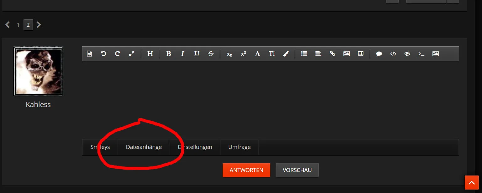 EDIT: Hab dir einen Screenshot davon angehängt wie das bei mir aussieht und eingekreist, wo du Bilder hochladen kannst: