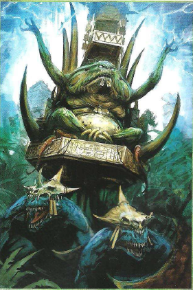 „Murghurg, träumst Du oder was soll Dein stures Gestarre bedeuten?“, sprach Mogrug der dreckige Knochenrassler, seines Zeichens Fleischer des Wanderfußstammes, und Murghurg schrak aus seinen Tagträumereien auf. „Was? Was ist los? - Ach ja, wir sollten jetzt angreifen, bevor uns diese dreckigen Hörnerviecher alles wegnehmen!“, antwortete er und schaute dabei dem Fleischer tief in die Augen. Irgendwie erhoffte er sich wohl dabei eine Antwort zu erkennen, denn Mogrug hatte immer, in allen Situationen, eine meistens sehr schlaue Antwort auf offene Fragen parat. Wäre er nicht der Magie so kundig, könnte er tatsächlich für ihn eine Bedrohung als Stammesanführer darstellen. Aber solange sich Mogrug auf seine Magie konzentrierte brauchte der Tyrann ihn, denn er musste stets dem Großen Schlund huldigen und wer konnte das besser machen als sein Fleischer? Niemand, das war ihm völlig klar und so duldete er seine andauernde Besserwisserei und zog seinen Nutzen daraus.