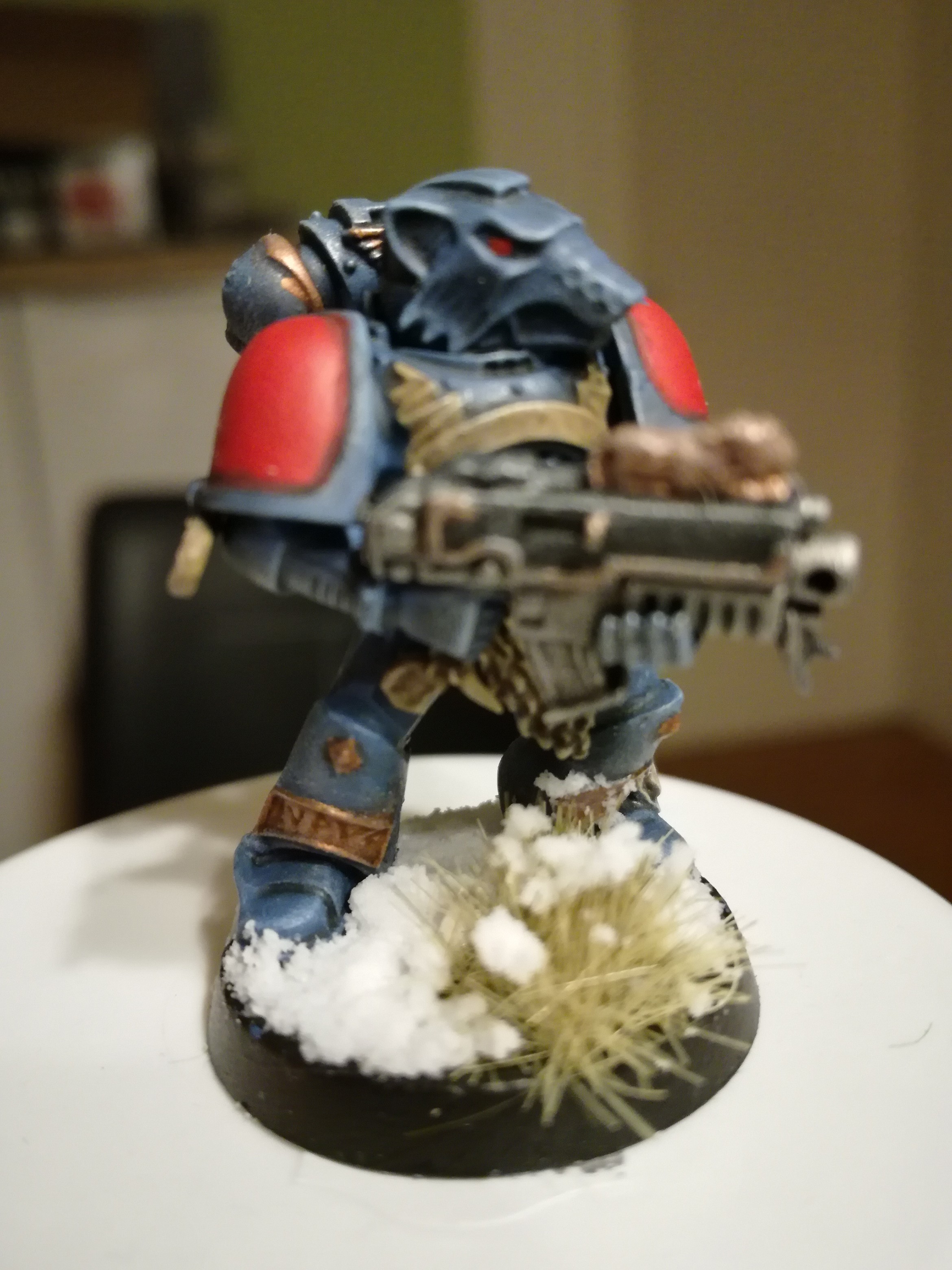 Es handelt sich hierbei um zwei Modelle aus dem Warhammer 40.000 Universum welche ich vor einigen Jahren bemalt habe für meine Space Wolves, leider packt mich der aktuelle Fluff nicht mehr so wirklich, weshalb das Projekt auf Eis gelegt wurde.