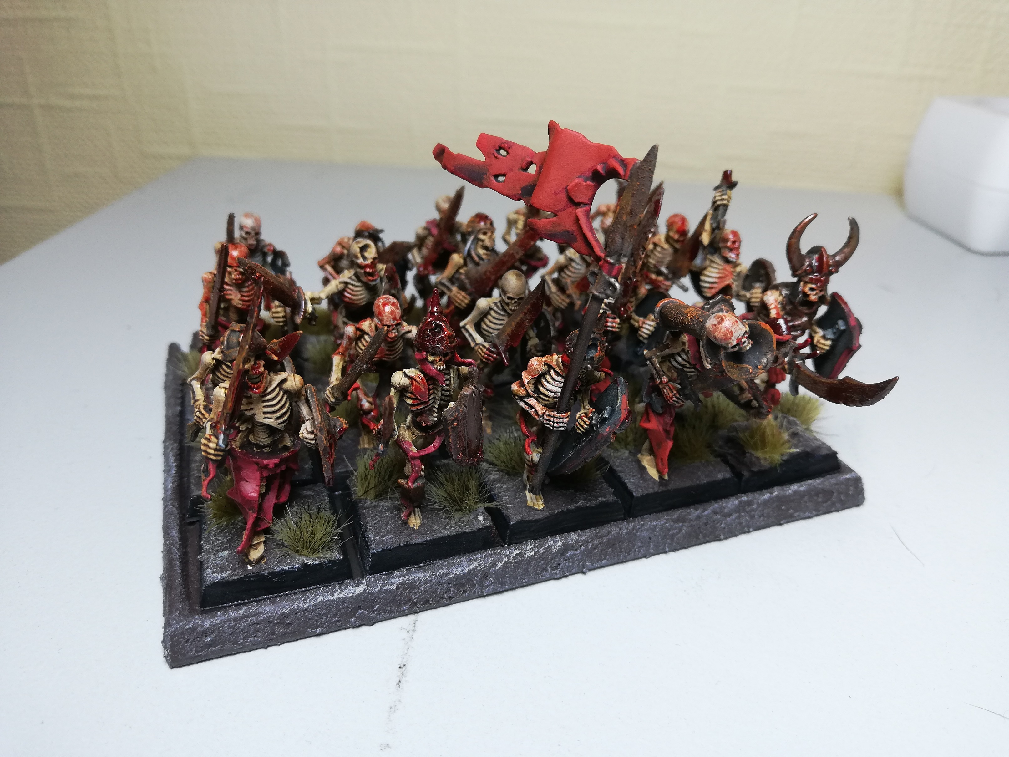 Ist halt alles ausm Bauch raus, was vielleicht Sinn ergibt. Man könnte dann auch einen Champion weglassen und eine 10er Einheit Skelette plus eine Einheit Zombies stellen...