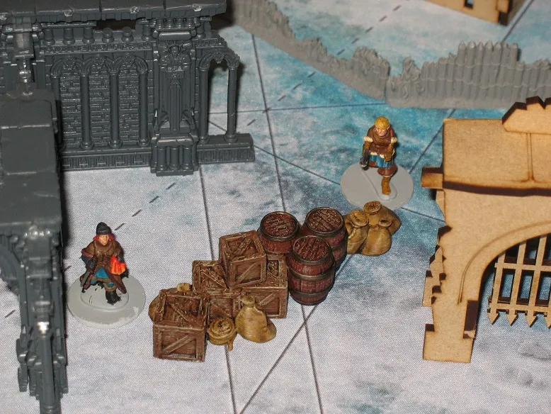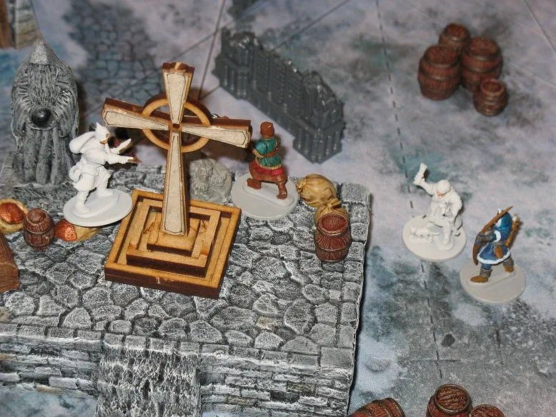 Wir waren doch überrascht wie "brutal" das Würfelglück zuschlagen oder versagen kann. Beispielsweise wurde mein Bogenschütze von der Bogenschützin meiner Frau mit einem (1!) Schuss erschossen. Letztendlich habe ich das Spiel verloren, weil es mir nicht gelang, die Schätze in meinen Besitz zu bringen und ich mich zusätzlich noch mit einem Keiler und einigen Riesenratten herumprügeln musste, die mir ganz schön zugesetzt haben.