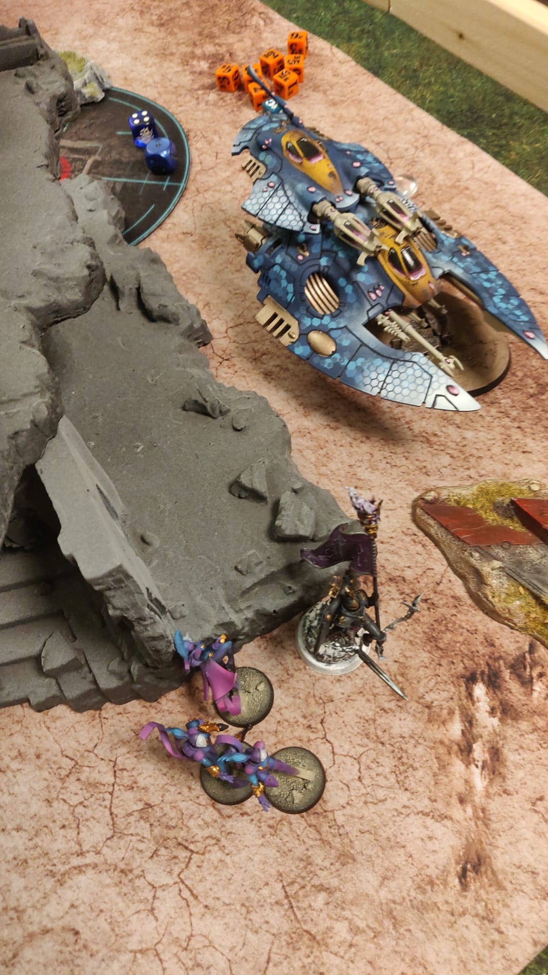 Habe meine Patroulie Harlequins mit Deathjester und zwei Units von je zwei Skyweavern sowie ein Spearhead Detachment mit Irrilyth, 2 x Dire Avengers und zwei Reapers mit Tempestlauncher gespielt. Mein Troupemaster hatte eine pivotal Role (2 Mortals nachden er zugeschlagen hat).