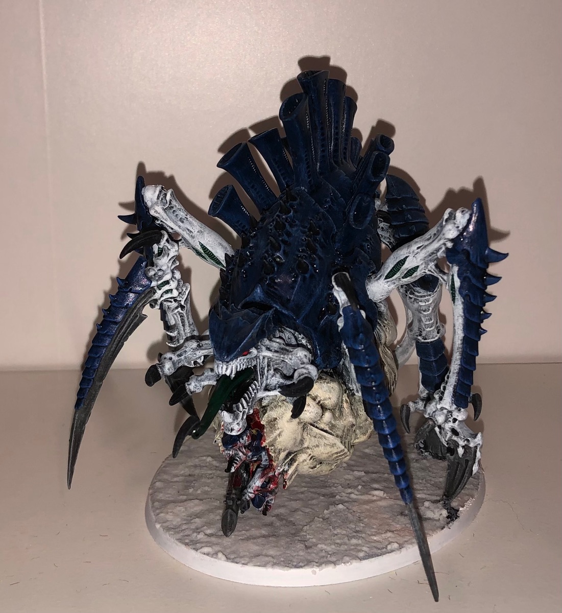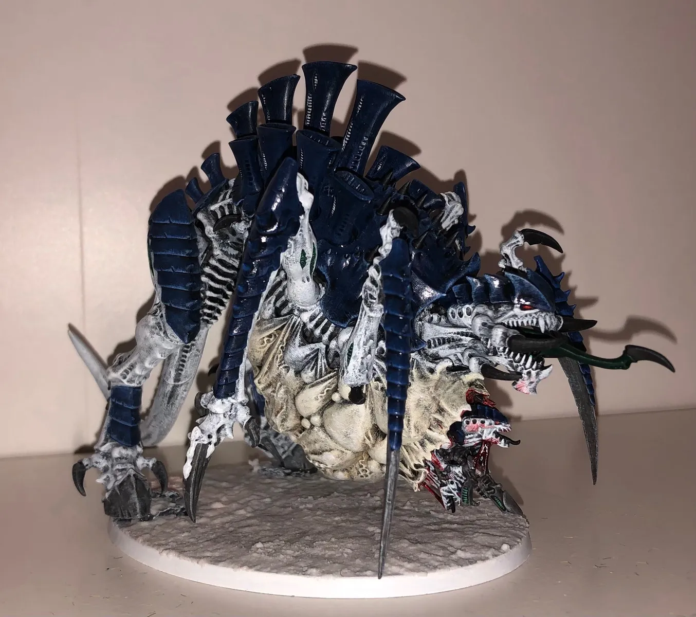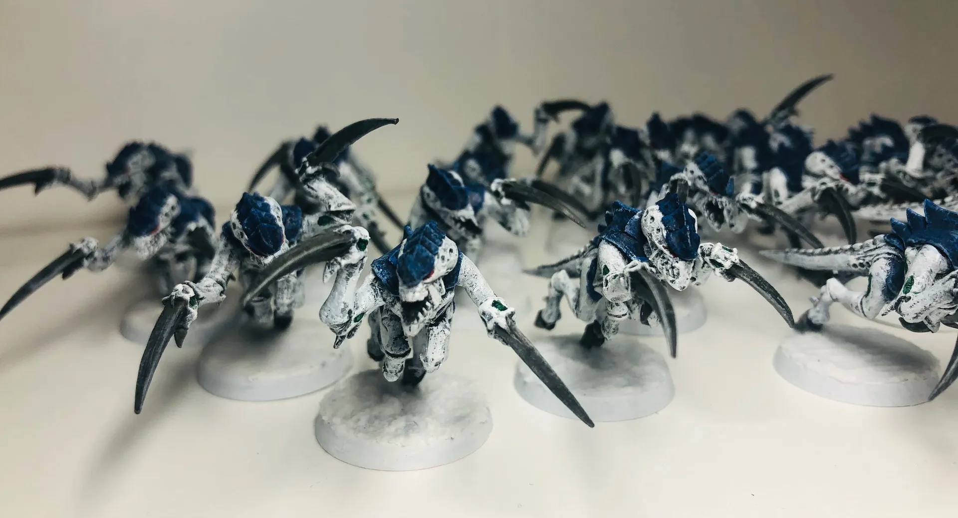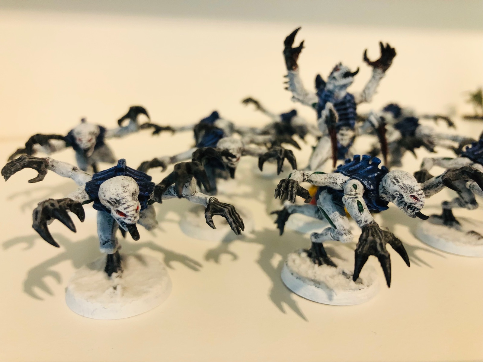 Mir hat der Einwand von Grimgorki sehr geholfen, dass man bedenken sollte, wie das Farbschema bei großen Modellen aussieht. Daher stehen zur Zeit drei Schwarmflotten im Kurs, bei denen eine gewisser Kontraststärke vorhanden ist: Kraken, Leviathan und Mara