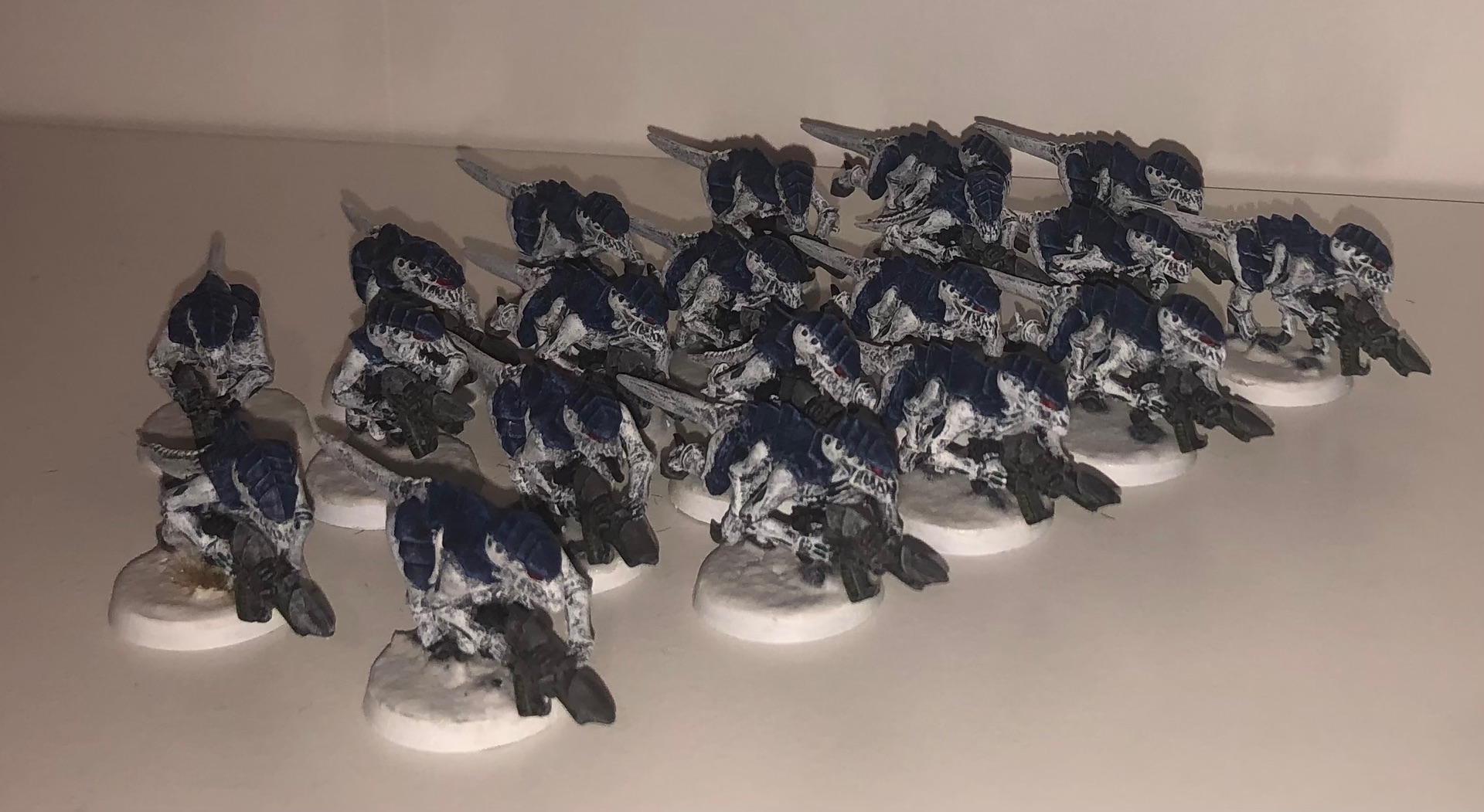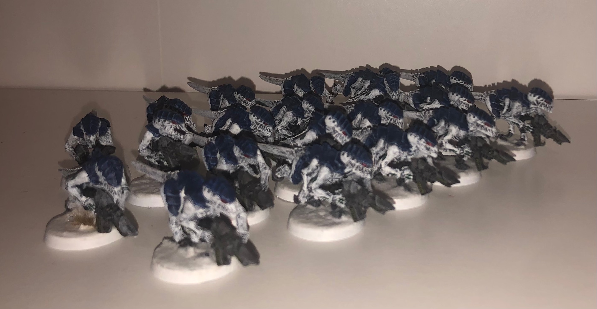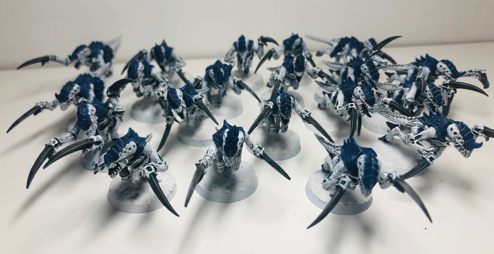 Mir hat der Einwand von Grimgorki sehr geholfen, dass man bedenken sollte, wie das Farbschema bei großen Modellen aussieht. Daher stehen zur Zeit drei Schwarmflotten im Kurs, bei denen eine gewisser Kontraststärke vorhanden ist: Kraken, Leviathan und Mara