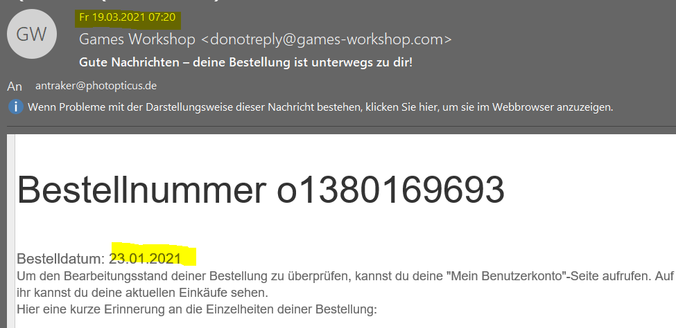 Dass GW noch immer direkt aus UK auf den Kontinent verschickt zeugt entweder von ausgiebigen Schlafmodus, Unfähigkeit oder Ungelenkigkeit. Die sollten eigentlich die Infrastruktur haben um das Ganze smart abzuwickeln. Vor allem hatten sie Zeit sich darauf vorzubereiten...