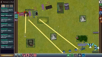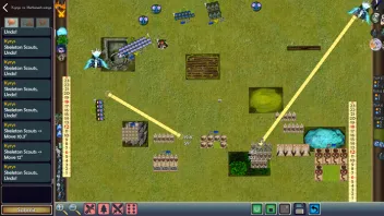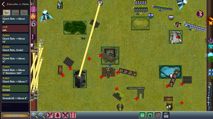 Herangehensweise Nr. 2 ist, die Seegarde mittig zu platzieren und Beschuss und Magie auf die 39er Fliese zu konzentrieren, mit einem Flieger den Vorstoß passiv zu zonen (hinter dem Fels) und an den Flanken die anderen beiden Flieger zu platzieren, um dort zu verhindern, dass ich eingekesselt werde. Finde ich ein bisschen riskanter.