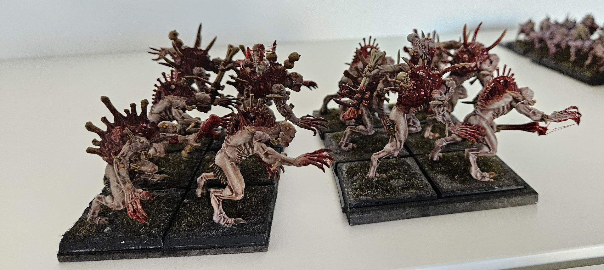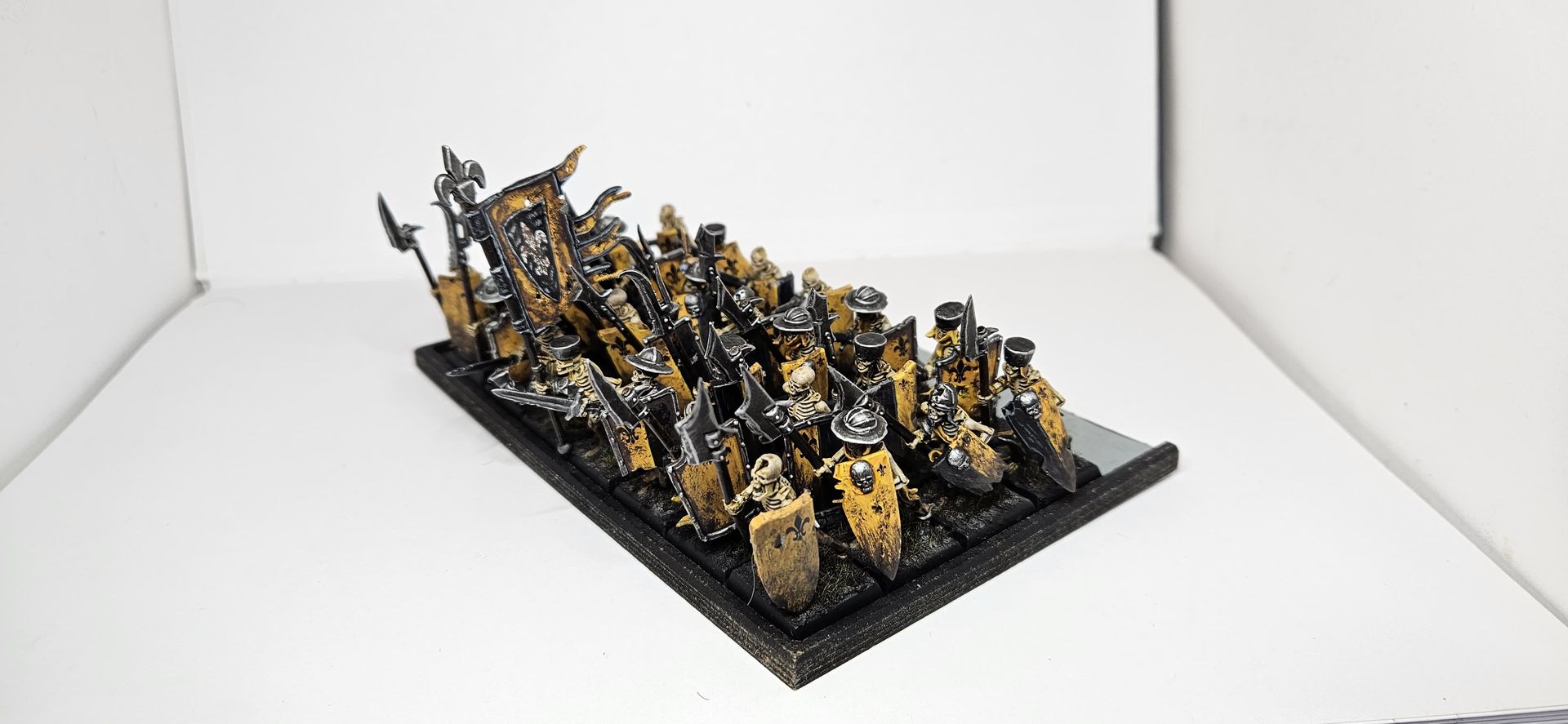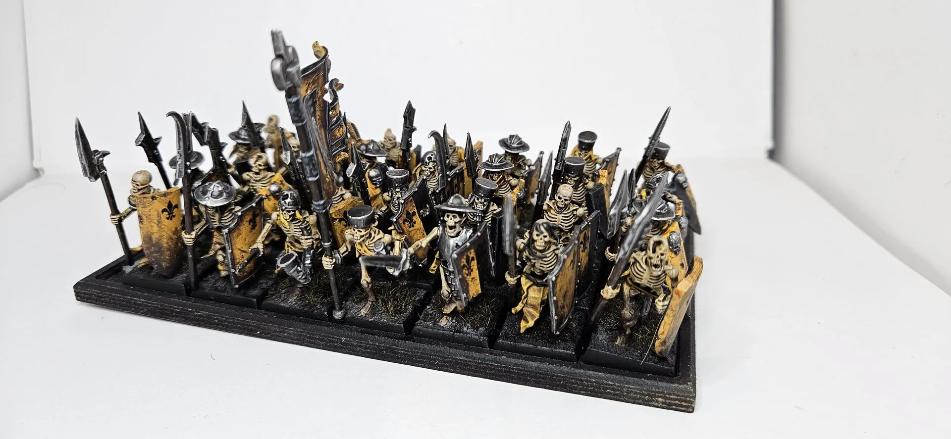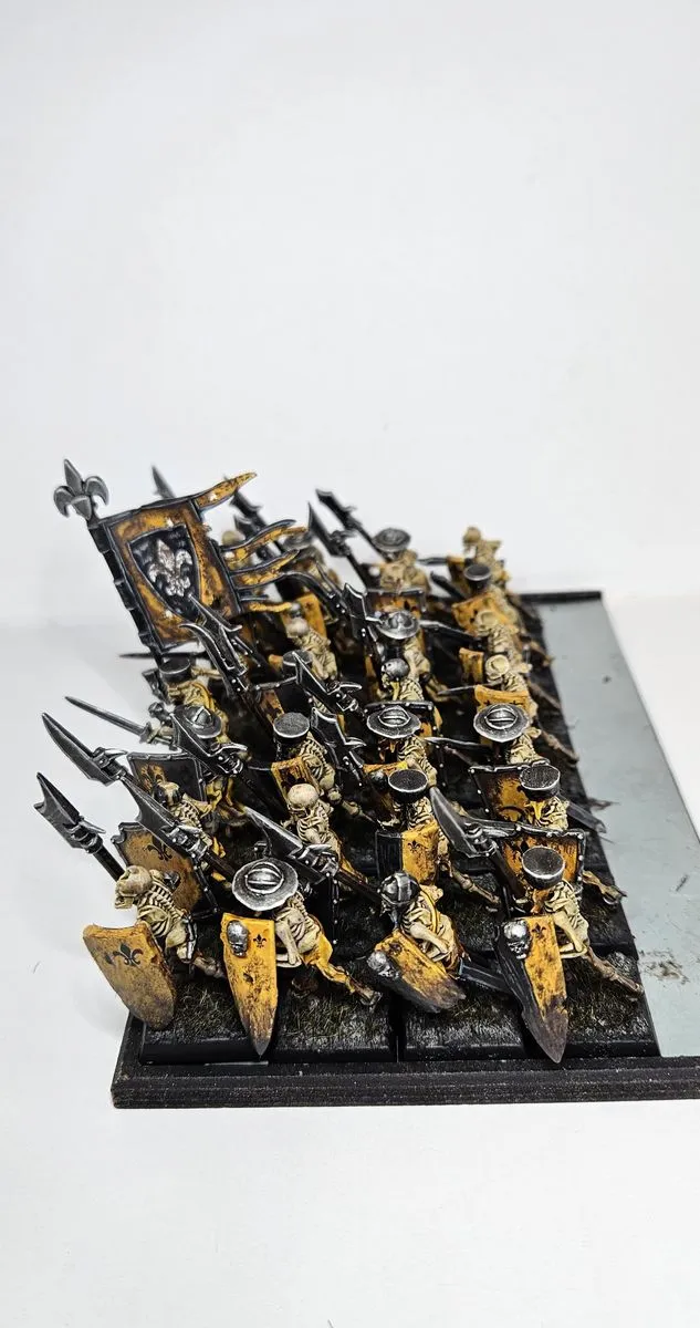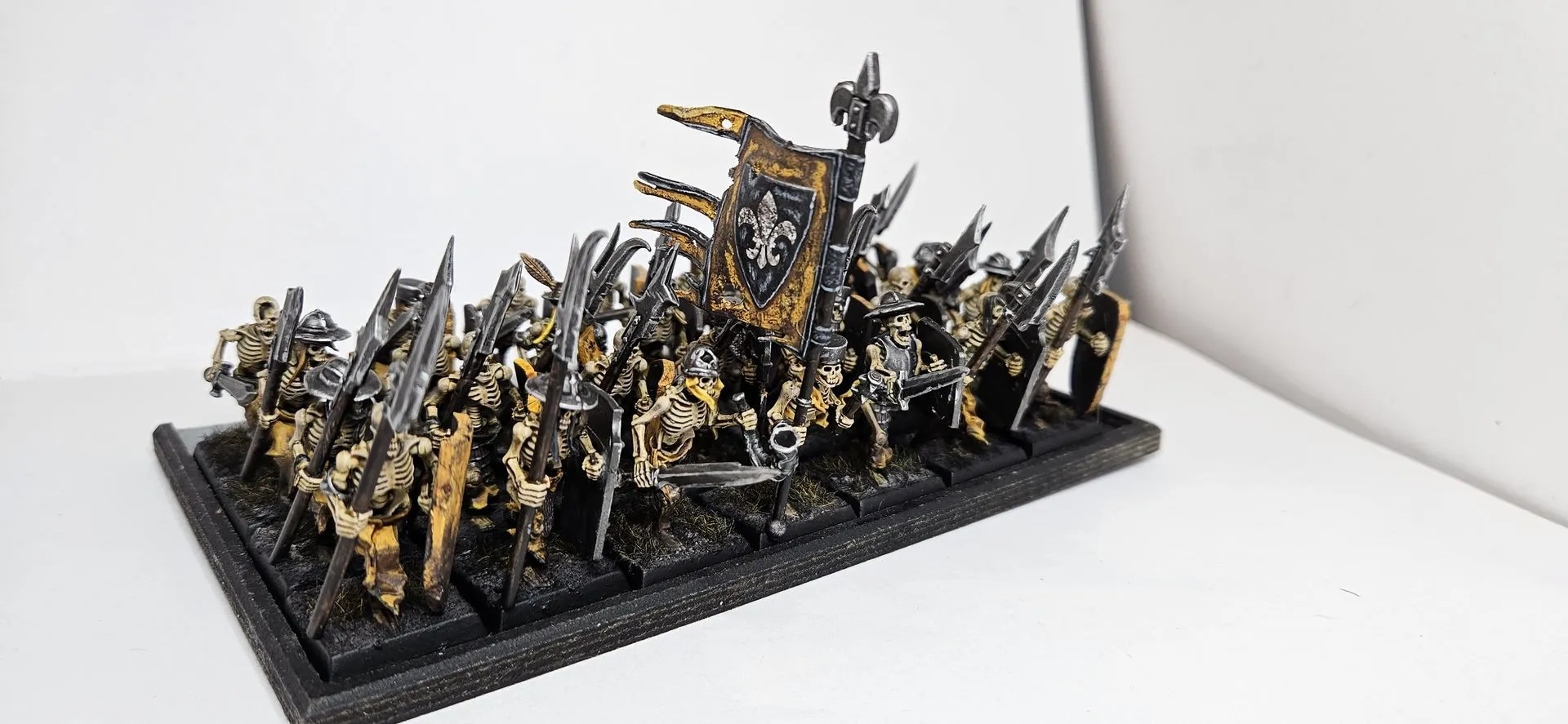 Tolle Arbeit! Vor allem weil die Skelette so aussehen, als hättest du die Original-Bretonenregimentern bzw. Figuren bis auf die Knochen seziert. Alles ist stimmig - die Waffen, Helme, Posen und Farben. Wenn Mousillion sich wieder erheben sollte, dann so.