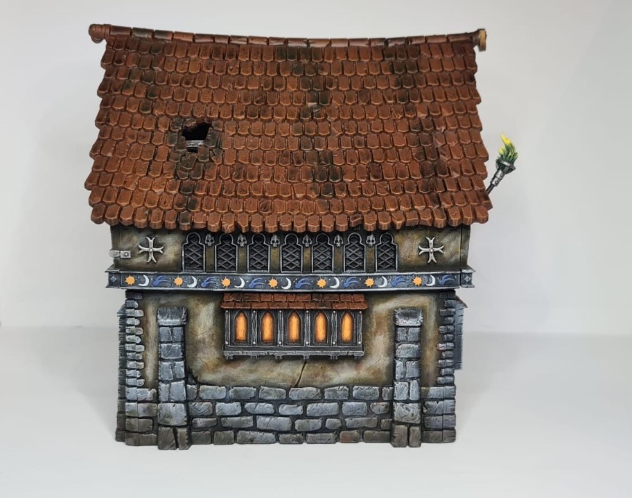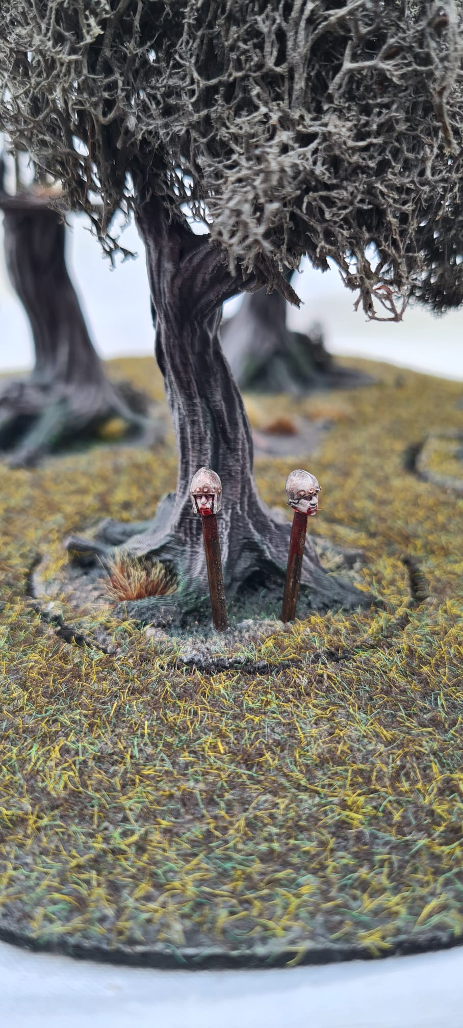 • Schönes waethering, saubere Arbeit. Was mich persönlich allerdings stört, dass du Sand in die Farbe gemischt hast. Ich kann es zwar nachvollziehen, da der GW Guss wirklich keinerlei Struktur bietet, aber warum sollten dicke Feldsteine so körnig sein?