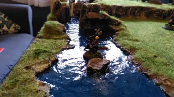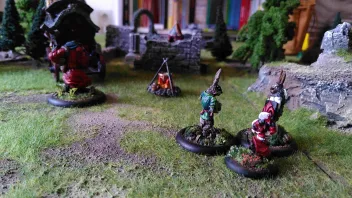 In unserer Gruppe spielen wir zu dritt. Zwei kleine Heldengruppen sind schon spielbereit bemalt und sie sind gestern gegeneinander angetreten. Auf meiner Seite waren es drei tapfere Ritter und ihr Magier (leider mit schlechten Handyfotos):