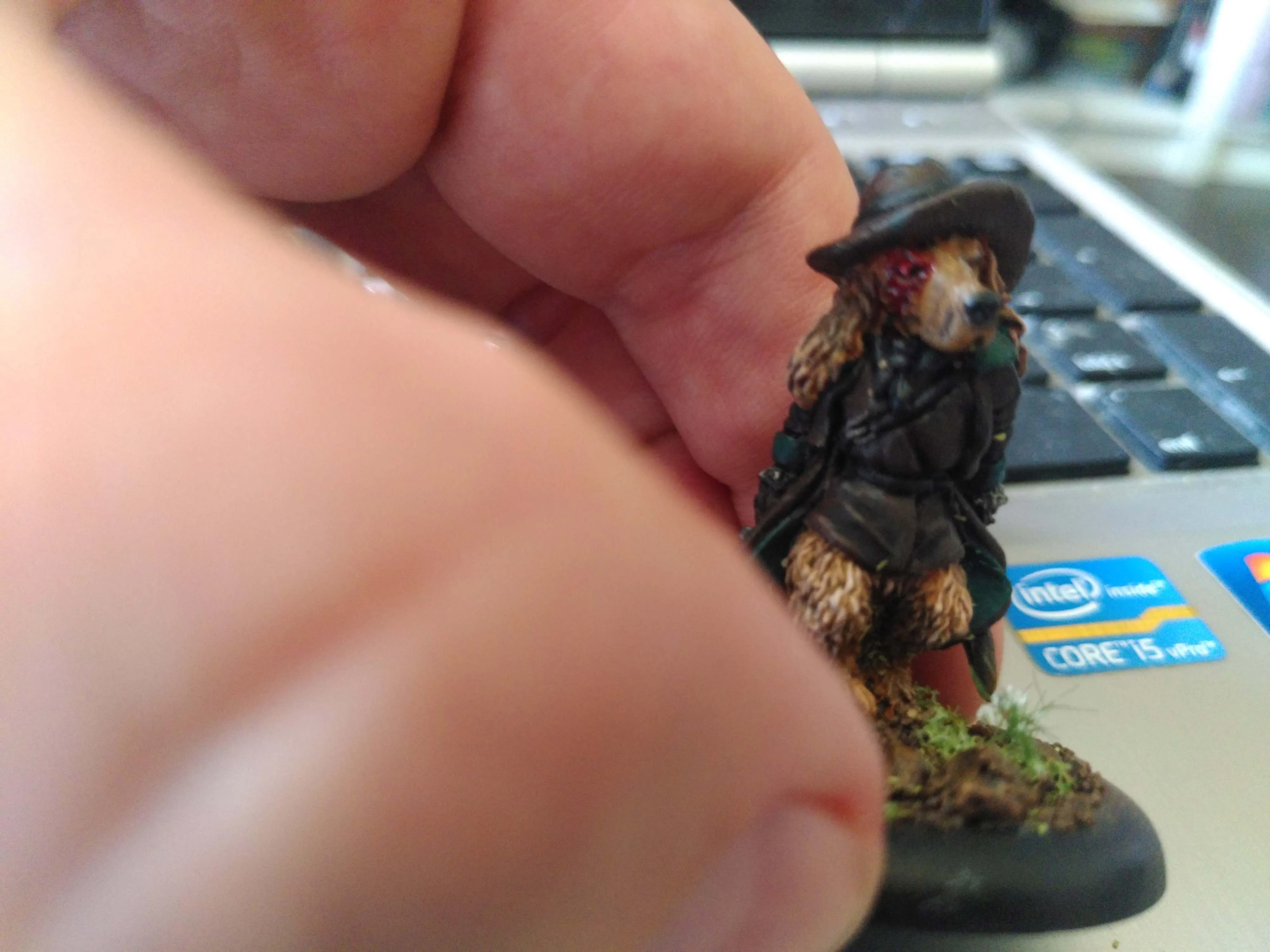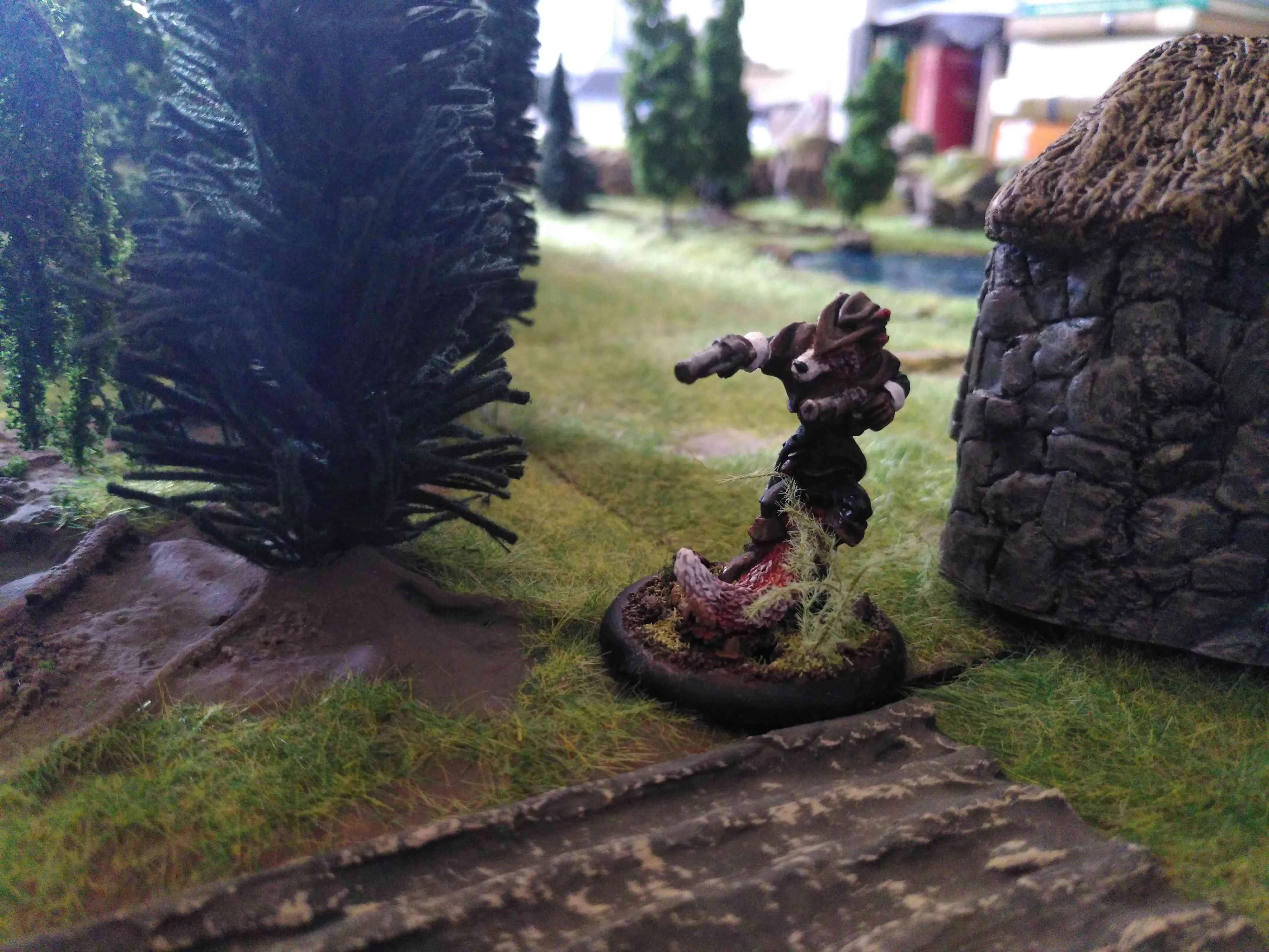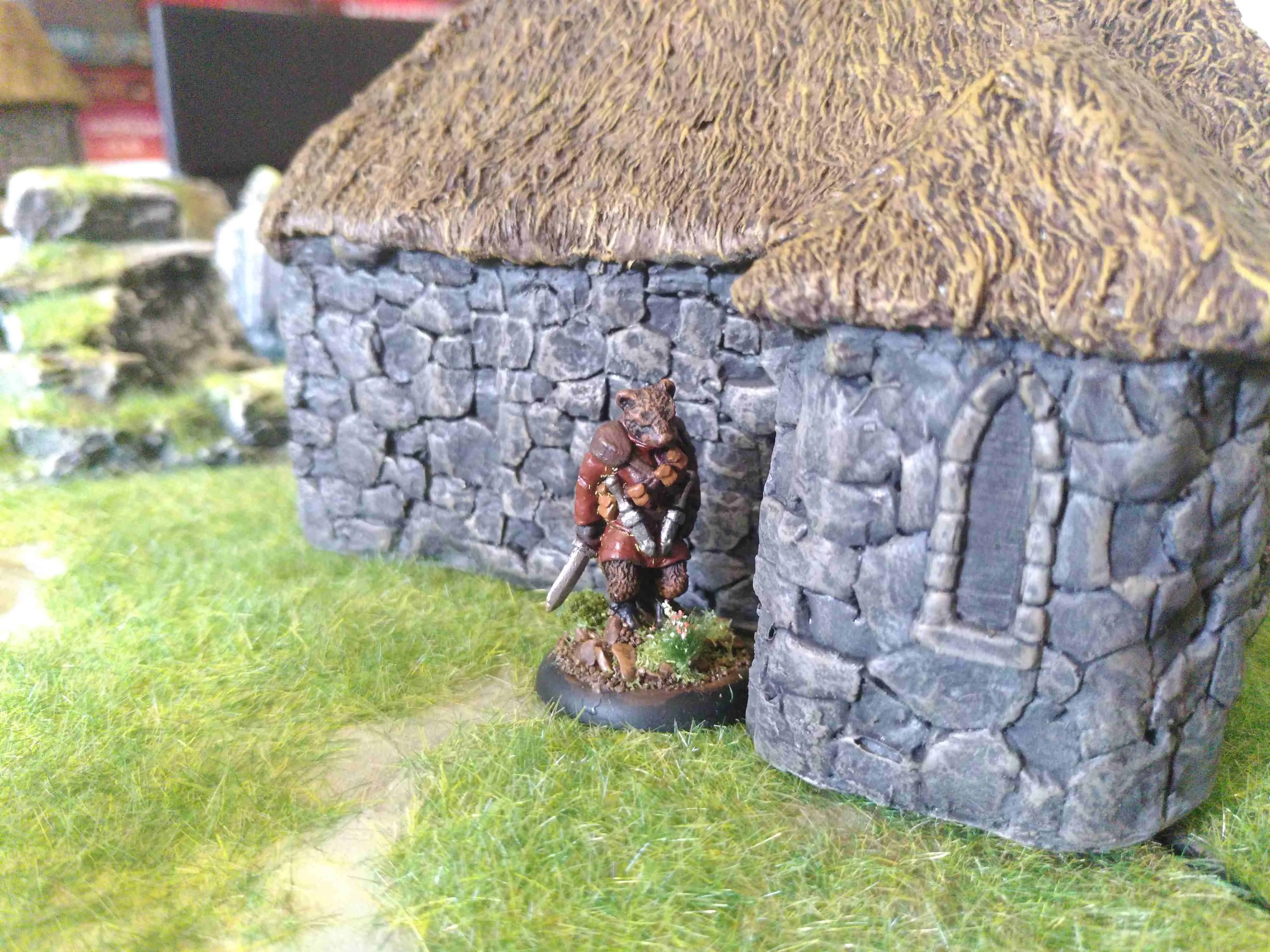 Das kann Freddie "Die Schlitzerin" nicht von sich behaupten. Sie hat in der Rebellenarmee gedient und kennt den Dreck und die harte Arbeit auf den Schlachtfelder. Doch Zweifel überkamen sie, ob die Füchse für die sie kämpfte, wirklich besser waren als die Adligen des Nordens. Das ganze Gerede von Freiheit glaubte sie den gierigen Füchsen schon bald nicht mehr. Am Ende ist sich doch jeder selbst am nächsten - und Freddie sich in jedem Fall. Moralische Ideale hat sie schon lange keine mehr. Aber bei Maggie MacPie kann sie genau mit ihren Fähigkeiten zu Geld kommen. (Sie ist - ebenso wie das Haus - noch nicht fertig bemalt, v.a. das Fell und Gesicht.)