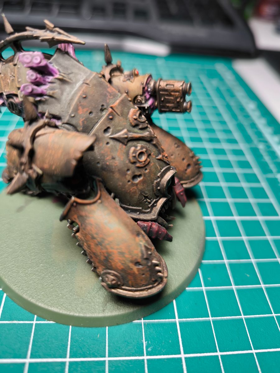 Hier ein kleiner WIP, habe das lila/pinke dann nochmal mit Agrax behandelt und dann hat es einen ton angenommen der mir zusagt, mit dem rost werde ich wahrscheinlich am rest vom modell sparsamer umgehen aber das entscheide ich spontan