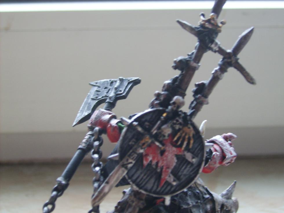 Die Rüstung und das Symbol, sind mit ner Grundschicht Scab, dann einmal mit Blood bemalt, danach mit Chainmail vorsichtig trockengebürstet und dann mit Devlin Mud getuscht. So mach ich es inzwischen fast immer, mein Borgut ist auch so bemalt, wenn gewünscht, kann ich den auch mal posten.