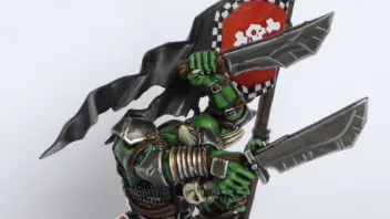 Ich muss gestehen, das ist nicht alles Freehand, der Schädel mit den gekreuzten Knochen ist ein Abziehbild von den Space-Orks. Hinten am Banner hab ich mir wirklich nicht sehr viel Mühe gegeben, das ist auf jeden Fall noch Verbesserungswürdig.