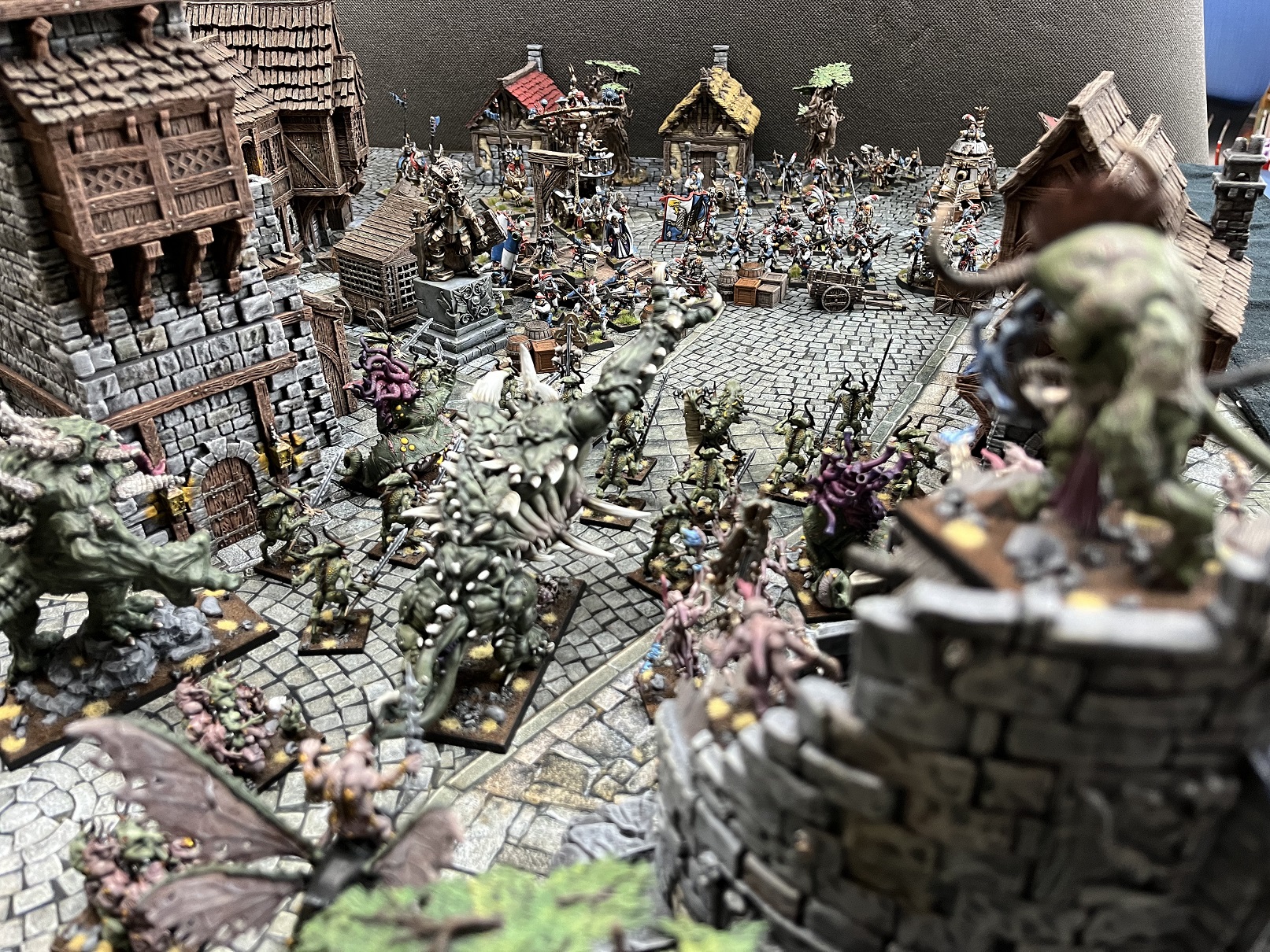 Dieses Jahr war bei mir sehr geprägt durch meine neue Dämonenarmee, sowie neu gedruckter Häuser, so dass hier eine ganze Stadt entstanden ist (und noch weitere Häuser werden hoffentlich nächstes Jahr folgen).