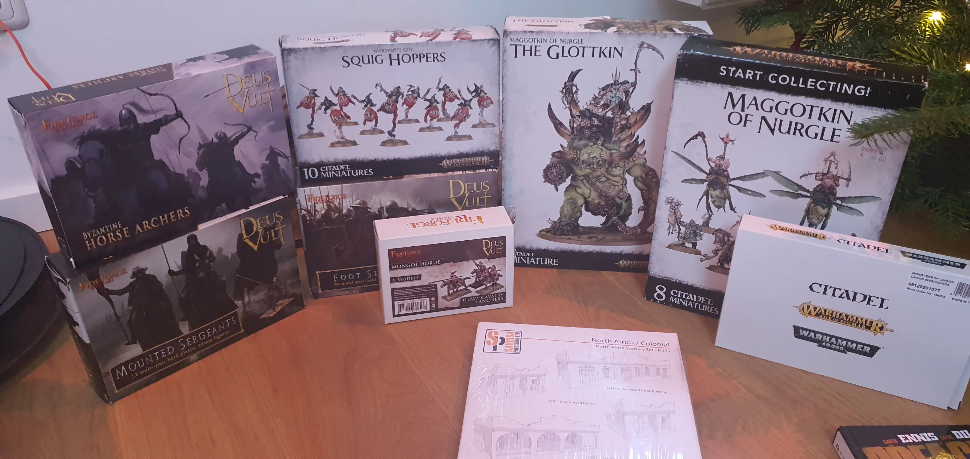 • durch mein nicht so tolles Geburtsdatum hatte ich an Heiligabend Doppeltbeschenkung und mir Nurgle Modelle gewünscht, die ich schon immer haben wollte. (Nurgle war okay, Zweiter Weltkrieg zu unweihnachtlich :tongue: )