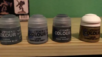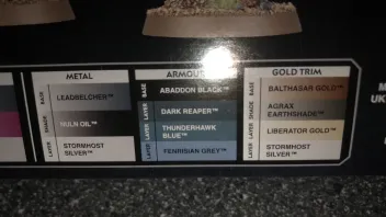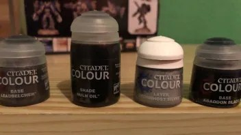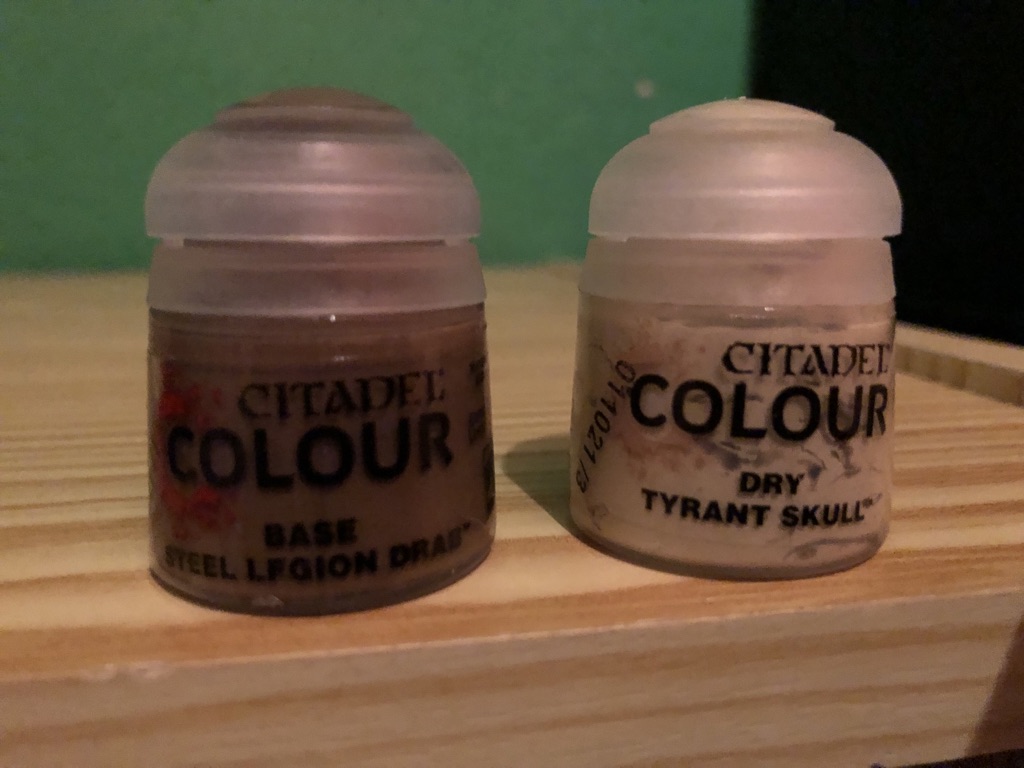 Also ich habe mir alle Farben gekauft für die gewünschte Farbvariante und zusätzlich noch "Steel Legion Drab und Tyrant Skull" um die Bases nachdem ich Vogelsand drauf geklebt habe zu bemalen.
