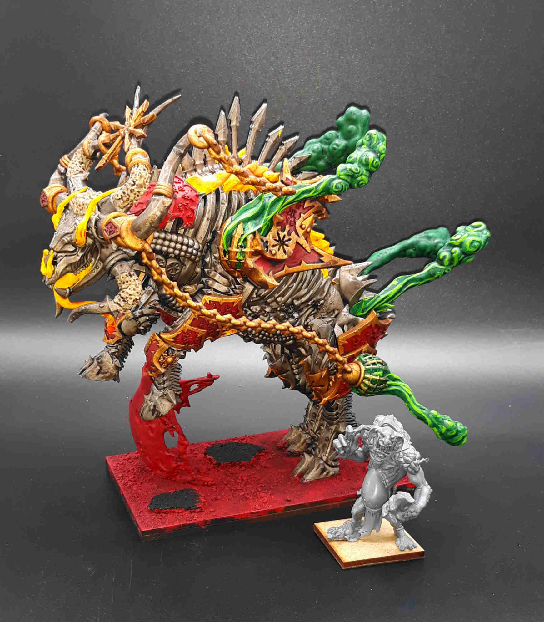 Das ist ein Kadim Titan der Infernal Dwarfs von LostKingdoms Miniatures.