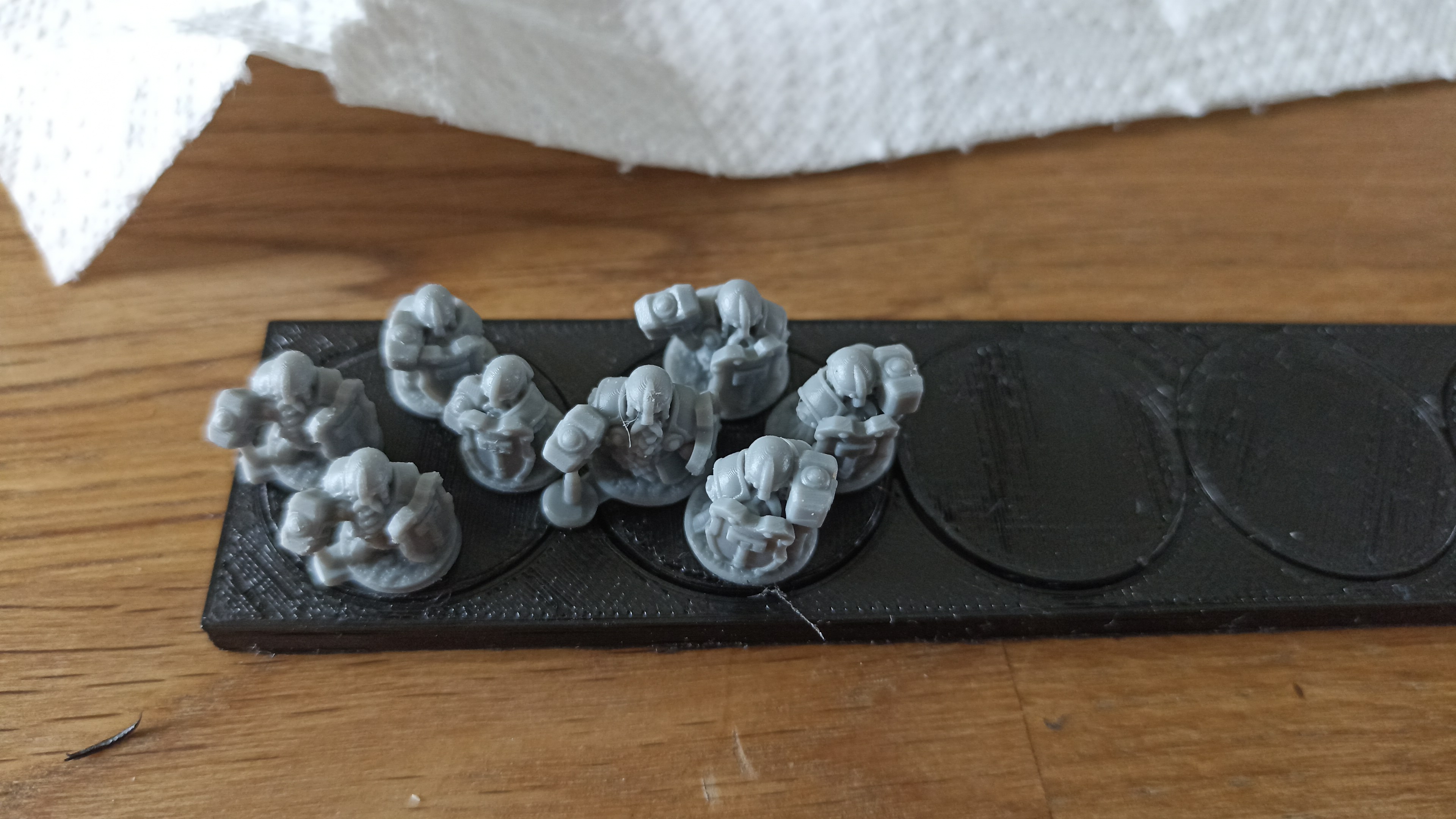 Da es feste Formationen gibt, designen wir spezielle Bases, wo vorne drauf stehen wird, welche Einheit das seien soll und auch welche Ausrüstung dran seien soll (wenn es die Modelle so noch nicht gibt).