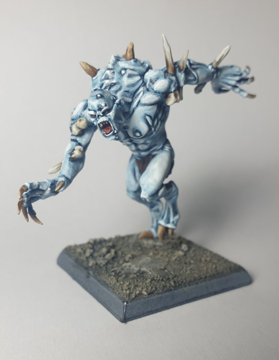 Ich komme nur langsam voran, Familie, Arbeit und andere Hobbys kosten eben Zeit. Aber hier mal der erste (fast*) fertige Gruftschrecken - die Malmethode funktioniert auch in groß. Wirkt tatsächlich grober als mancher Quick Paint Job mit Contrast, aber dafür kann ich die Highlights sehr gut selbst steuern. Wahrscheinlich müsste ich die Farben noch stärker verdünnen und noch mehr layern... aber dafür habe ich die Zeit dann nicht.