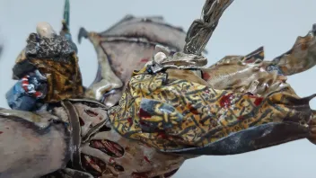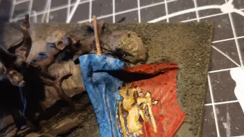Die ersten Washs und Glazes wurden aufgetragen. Ich habe die Adern jetzt tatsächlich noch leicht mit Lila nachgezogen, rot hätte nach dem wash aber auch gut gepasst.
