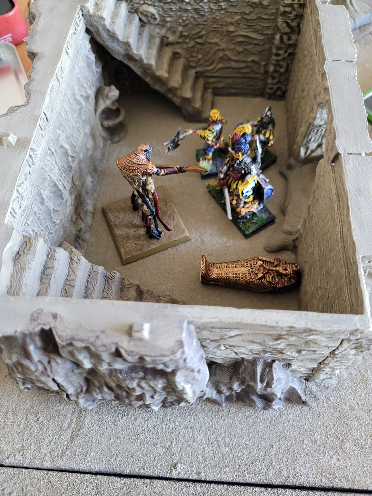 Abschließend ein großes Lob an Beorn für die großartige Wüstenplatte, die schön stimmig bemalten Gruftkönige und die Mühen für das spannende Szenario! Ich freue mich auf ein „Rückspiel“ wenn die Gruftkönige ihre Schätze zurückholen wollen. Das müsste dann ja im Prinzip eine Belagerung Luccinis werden;-)