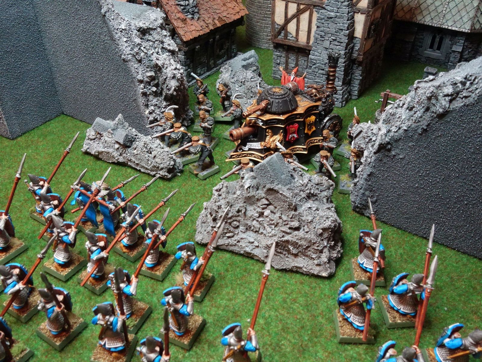 Die haben bestimmt auch schweres Belagerungsgerät. Riesige Speerschleudern oder andere Kriegsgeräte mit Explosivgeschossen dran oder so. Außerdem gibt es ja noch andere Taktiken als Schießen. Unterminieren zum Beispiel. Und außerdem zieht, wie immer, das beste Fantasyargument: Magie! Obwohl ich die Idee mit dem tollpatschigen Lehrling gut finde ![]()