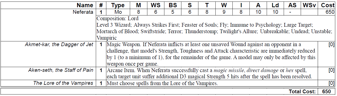 1 Neferata, 650 pts