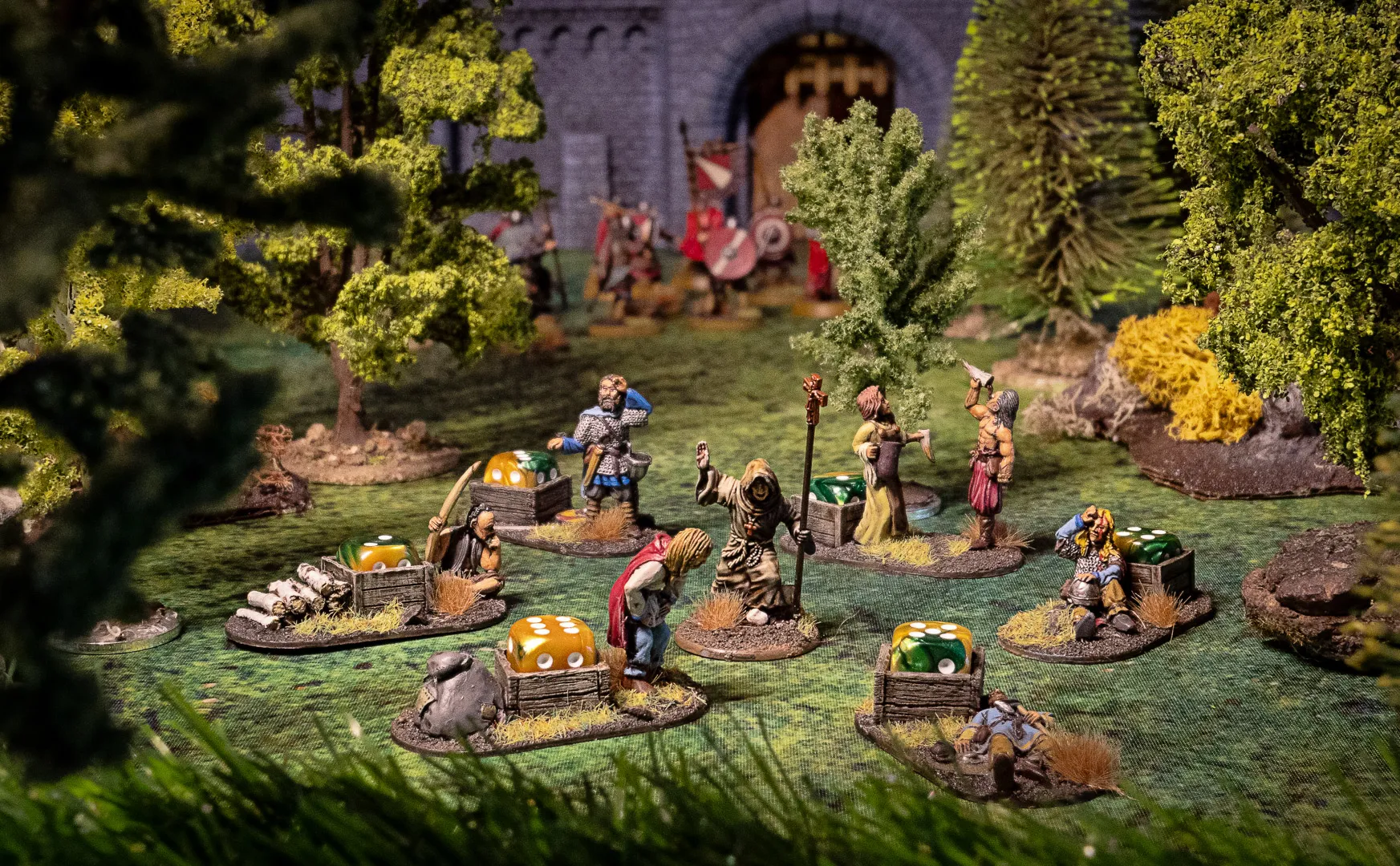 Die im Vordergund gezeigten Minituren sind meine anglo-dänischen Ermüdungsmarker für das historische Spiel "SAGA- Age of Vikings".