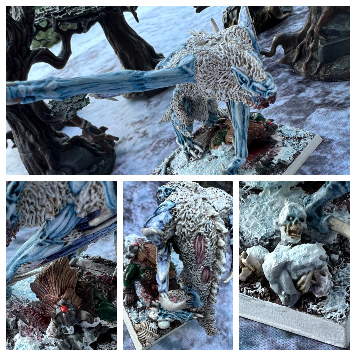 Erst 2020 habe ich mit dem Zombiedrachen wieder mit dem Malen begonnen und seitdem im Wechsel mit Dunkelelfen und Imperium immer wieder mal etwas angemalt. Es ist immer noch arg wenig. Aber es geht voran. Ich möchte euch mit diesem Thread nun meine Vision eines eisigen Pilgerorts für die Untoten näherbringen. Ähnlichkeiten zu Warcraft III's Frozen Throne sind nicht zufällig, das Addon hat mich damals inspiriert und ich halte an der Vision eisiger Vampire fest.