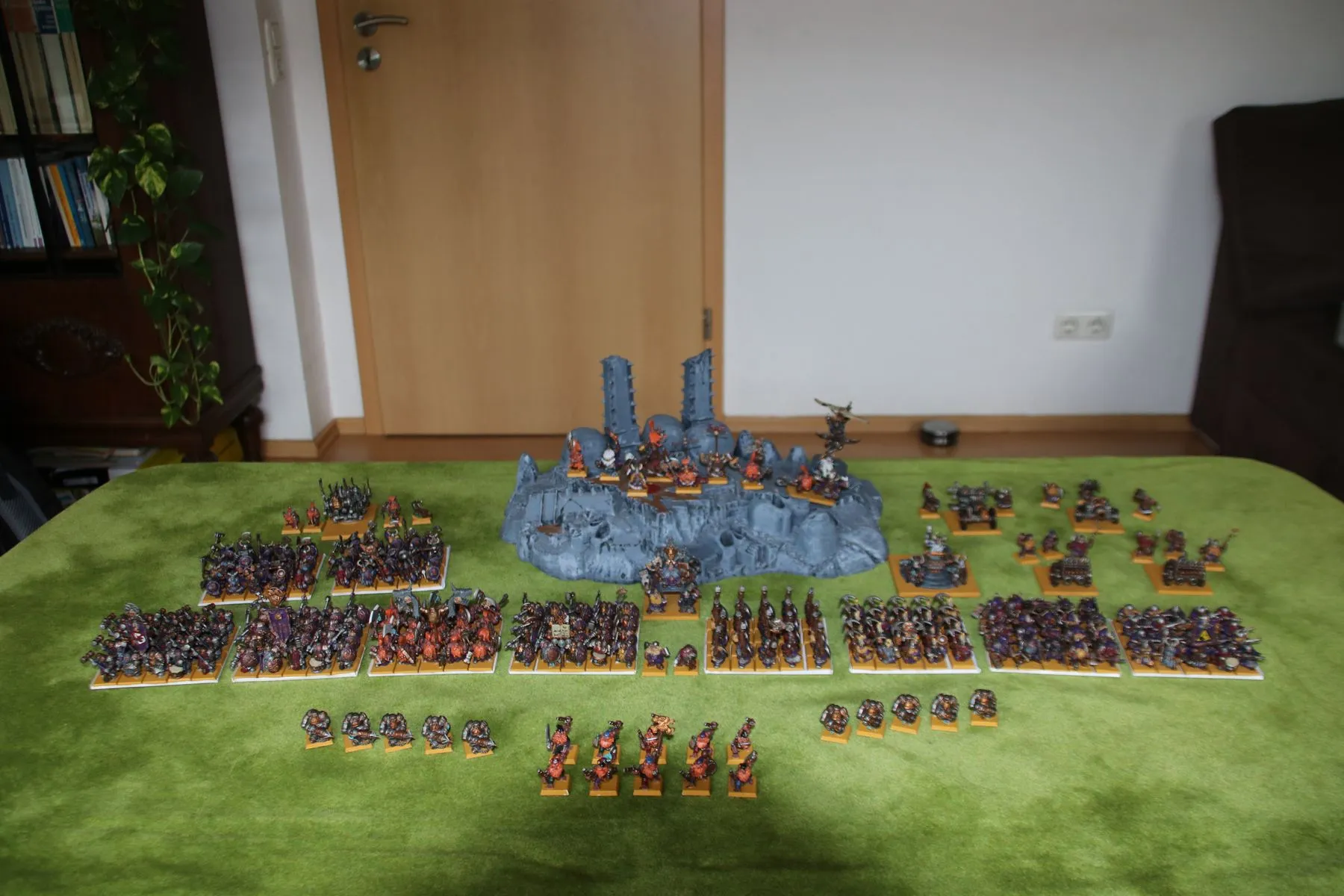 8000 Punkte Hochelfen, 8000 Punkte Chaoskrieger, 6000 Punkte Vampirfürsten, 4000 Punkte Gruftkönige von Khemri, 4000 Punkte Imperium und 6000 Punkte Zwerge.