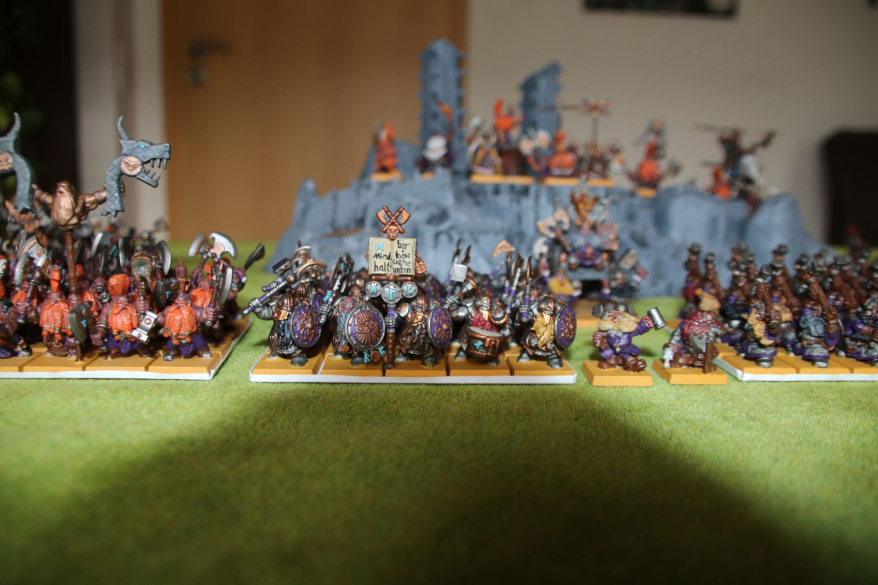 wie versprochen kommen heute die Armeebilder der Zwerge. Es sind insgesamt 6000 Punkte und circa 250 Modelle.
