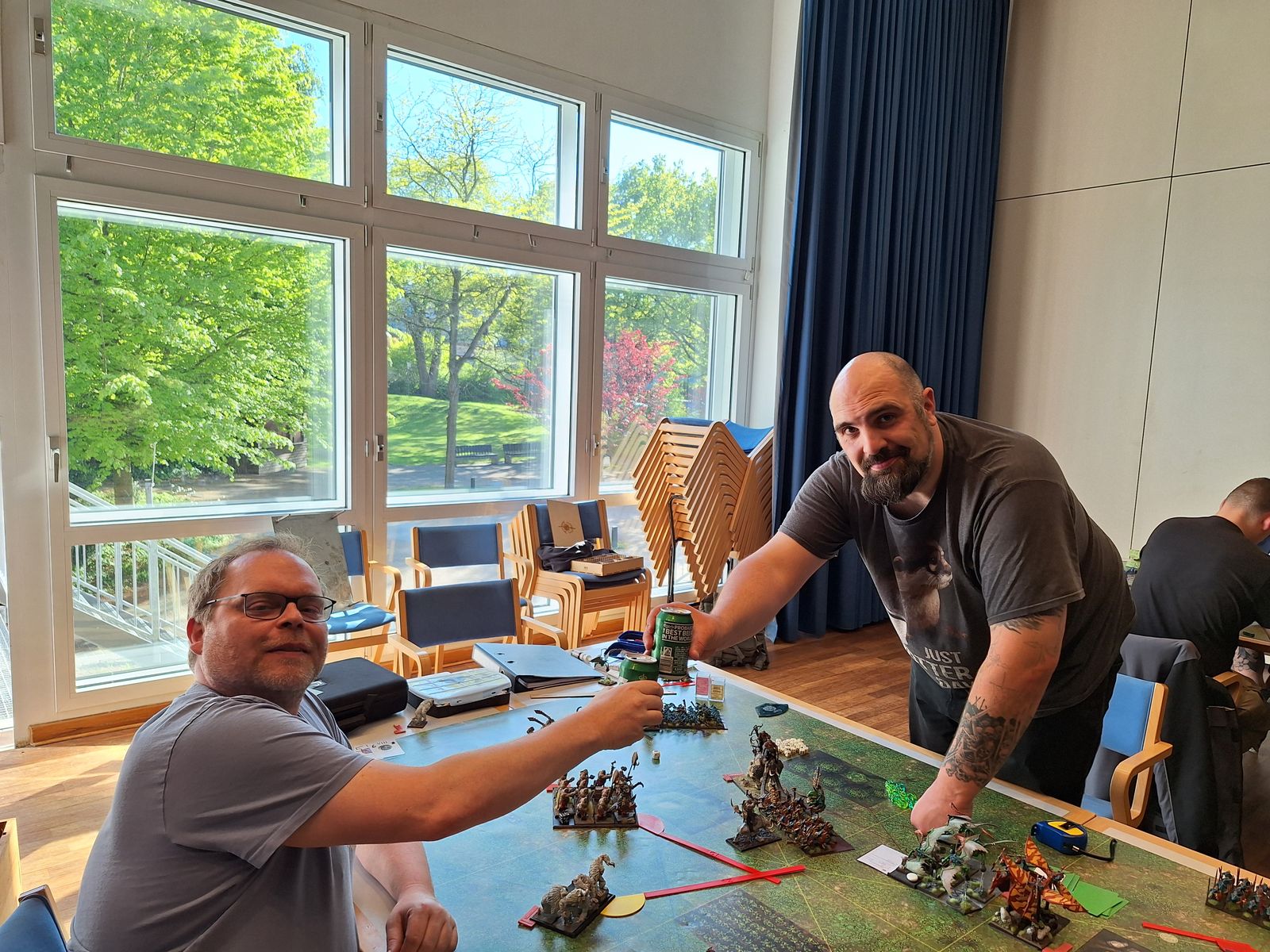 Auf der anderen Seite gab es auch frisch gedruckte unbemalte Armeen und ein Spiel hat es nicht über Runde 3 hinaus geschafft. Aber jeder fängt mal an, und wir geben Tipps, dass das in Zukunft besser läuft. Spaß hatten trotzdem alle und das ist die Hauptsache.