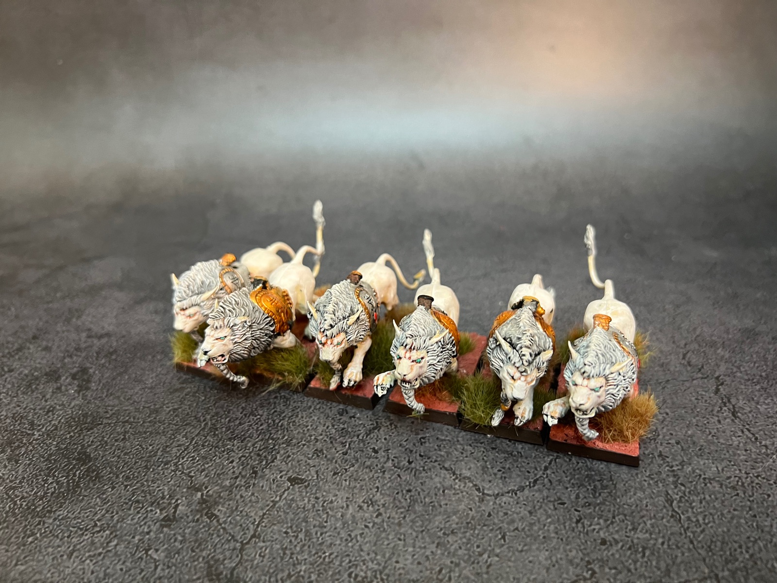 Die weißen Keiler der Ebene sind die bevorzugten Reittiere der Goldbäuche: Immer hungrig, aggressiv und überlaunig entsprechen sie eins zu eins dem Naturell unserer Goldbäuche.